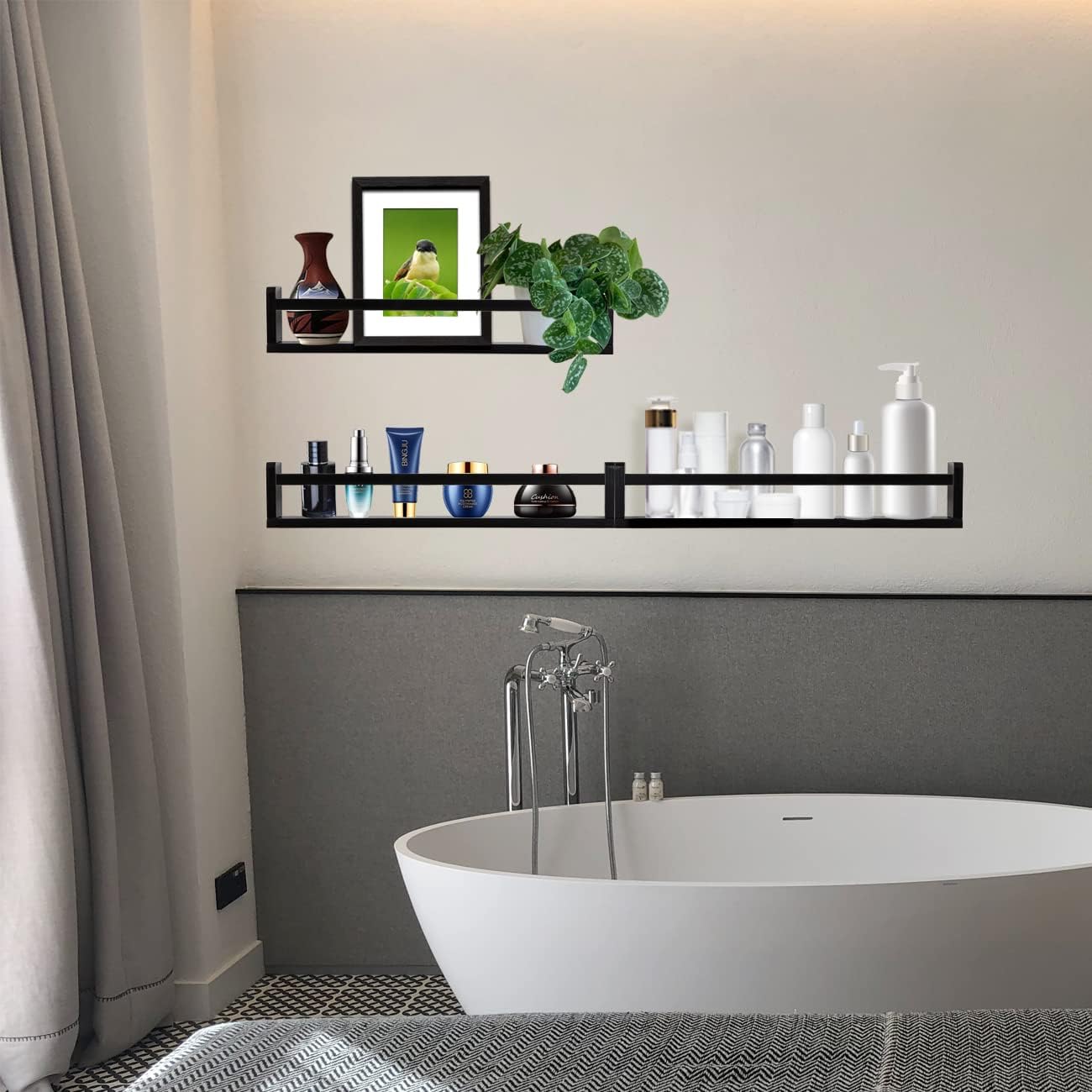 • Multifunctional Floating Shelf: This multifunctional shelf set can play its value in any room. You can use it as a bookcase in your child's room, a flower rack in the living room, a spice rack in the kitchen, in the bathroom to store supplies such as shower gel and shampoo.