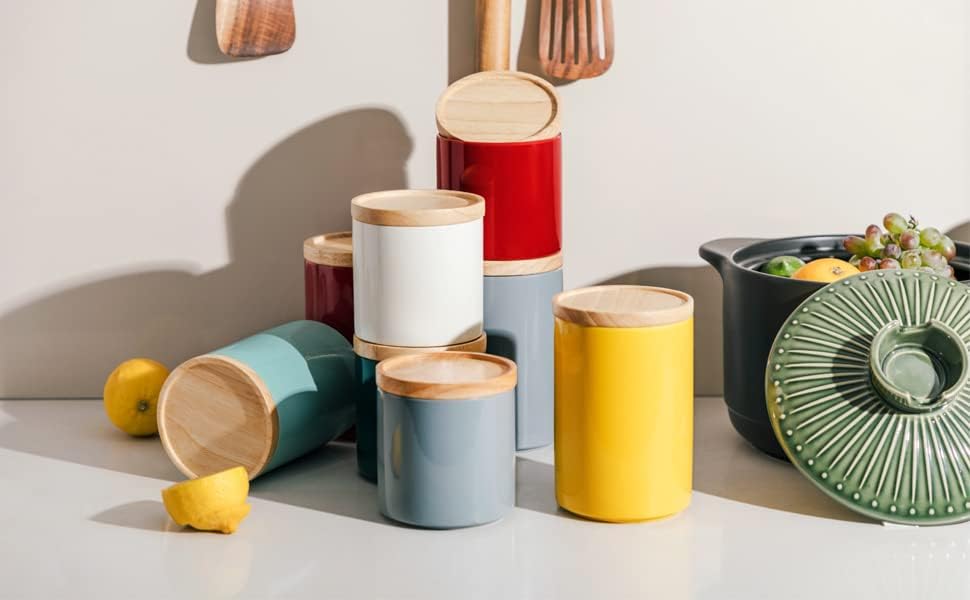 • Ceramic Material - Sweejar food storage containers are made of food grade, smooth porcelain. The containers with wooden lid and rubber seal to ensure a true airtight seal and lightproof. They are good for maintaining food and seasoning fresh.
