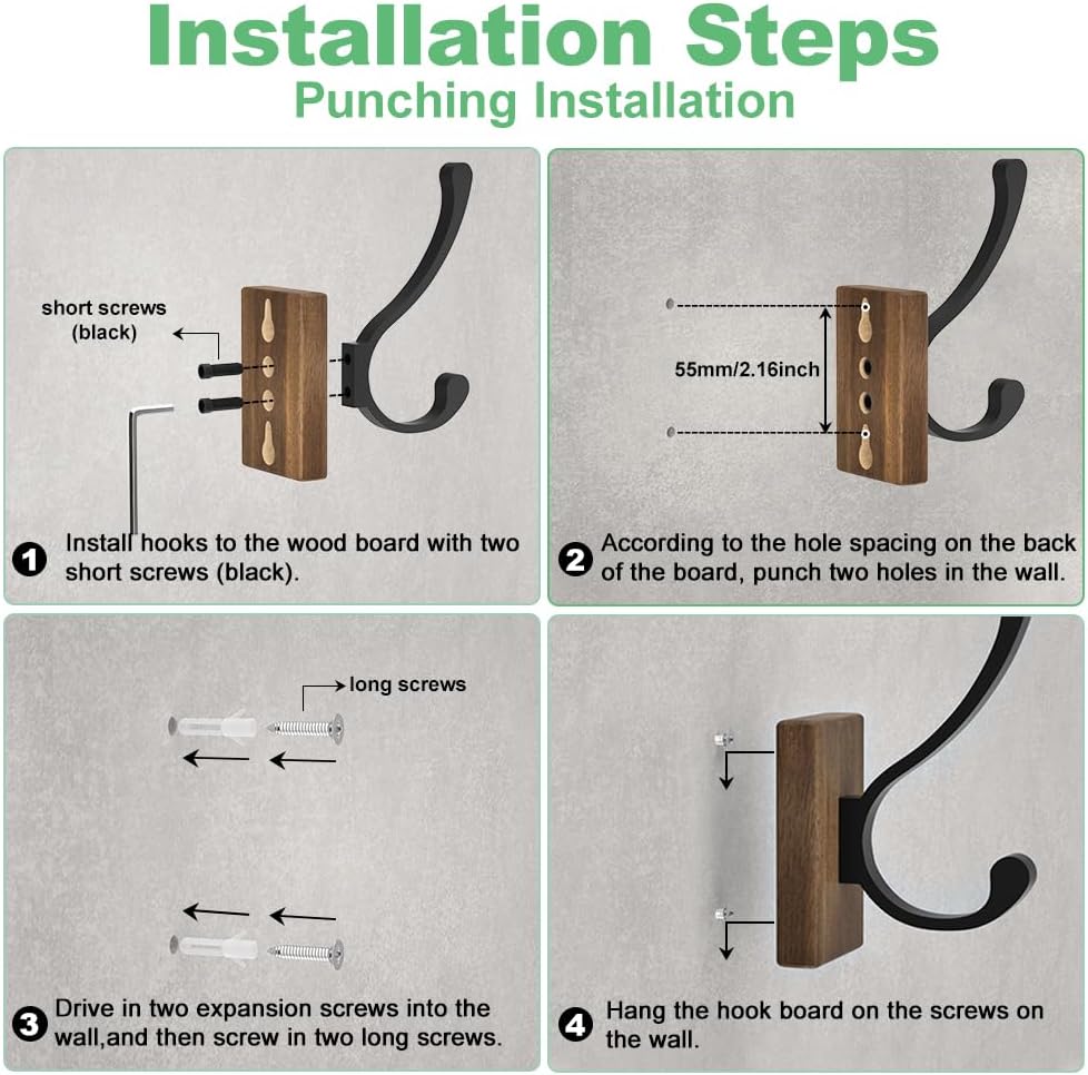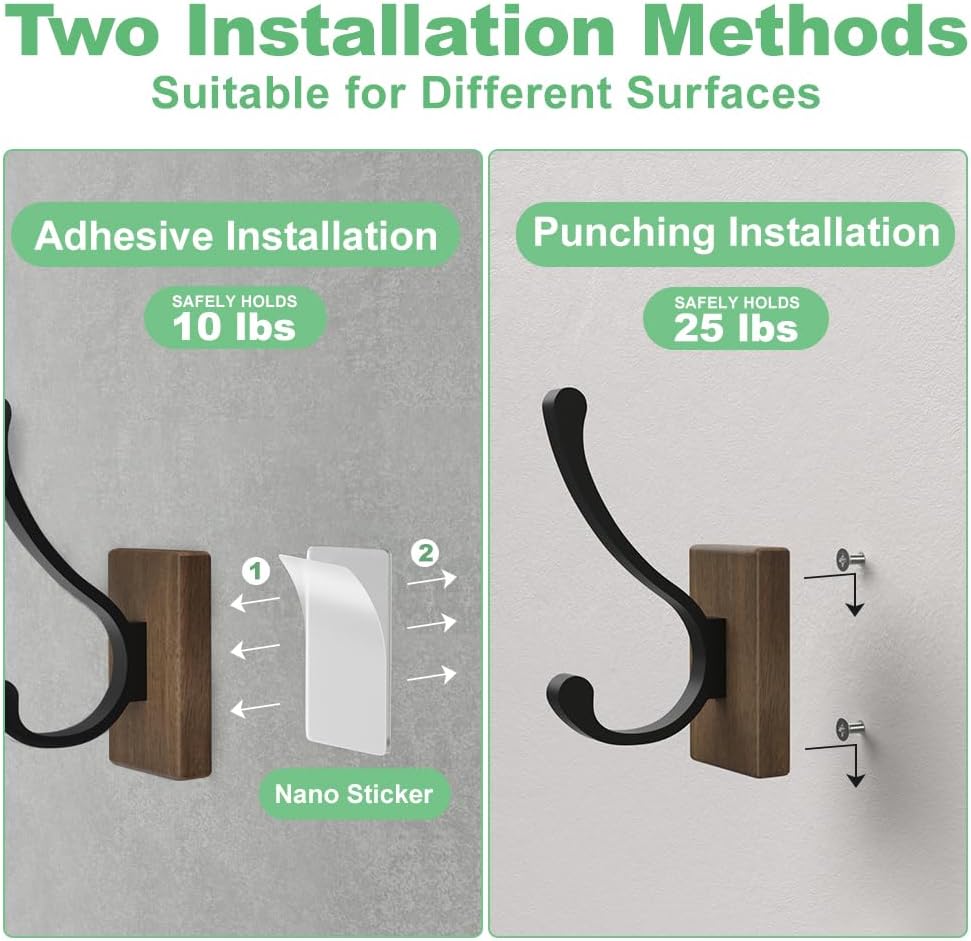 • Easy to Install: Coat hooks wall mounted, super easy to install. Just drill / install wall anchors / install screws and twist on the wall. Or you can choose to paste installation according to your needs, which saves time and effort. (mounting accessories are all included).