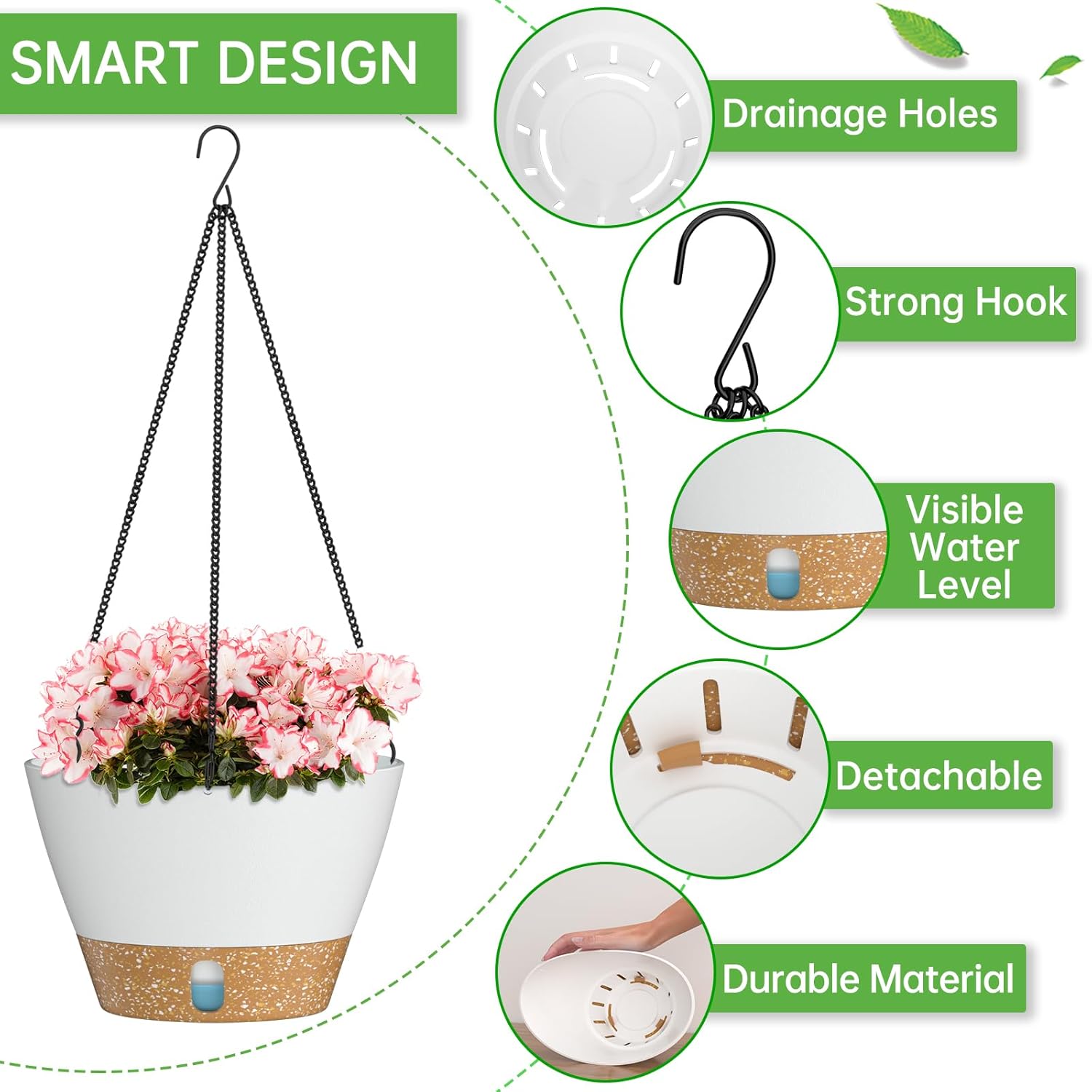 • 【Hanging Basket With Visible Water Level】Our hanging pots for plants indoor come with a visual water level window to monitor the water storage status in real time, avoiding damage to your plants due to lack of water or overwatering, ensuring that your plants thrive under scientific care