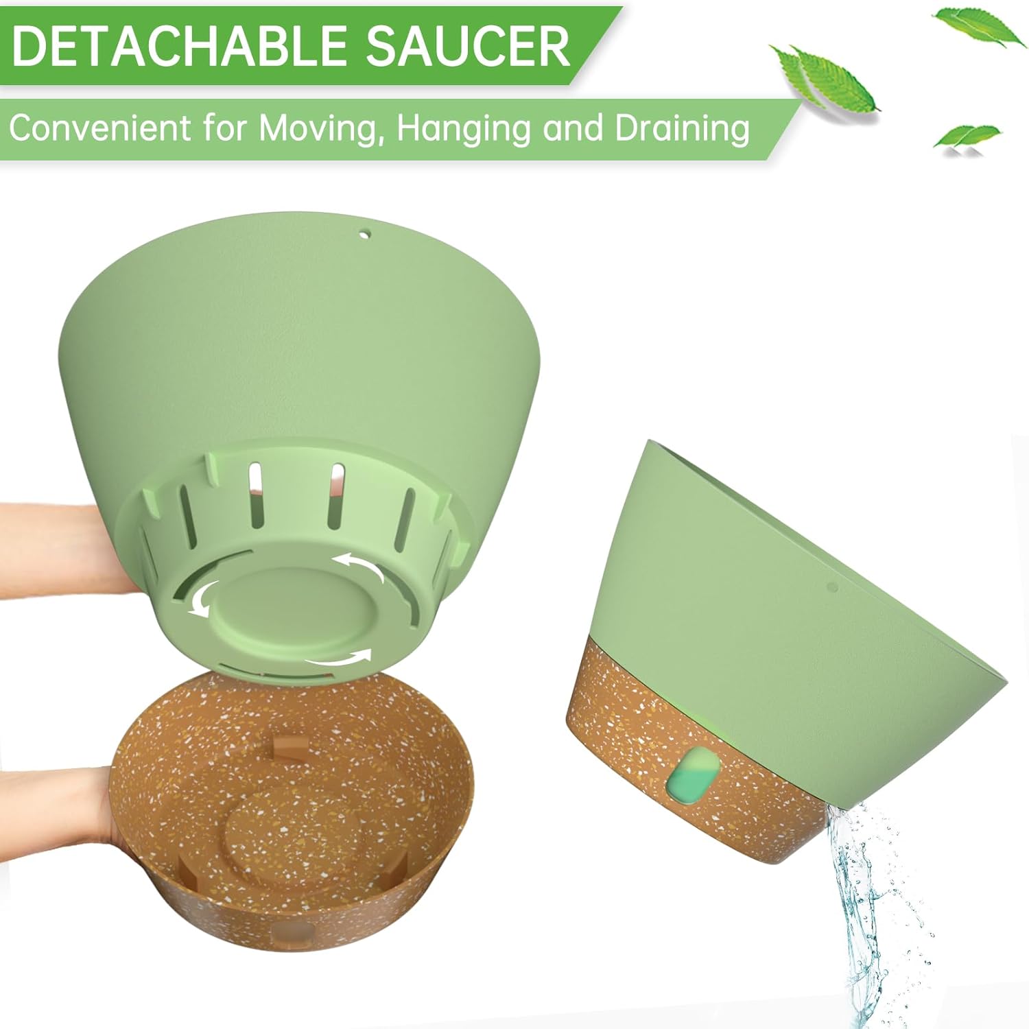 • Snap-in Tray with Visible Water Level: The tray can be removed for easy cleaning of the flower pot. The self-watering flower pot with drainage holes can drain excess water to the tray, so the tray will store an amount of water for the plant(Longer than 7 days). And you can water the plants by looking at the water level.