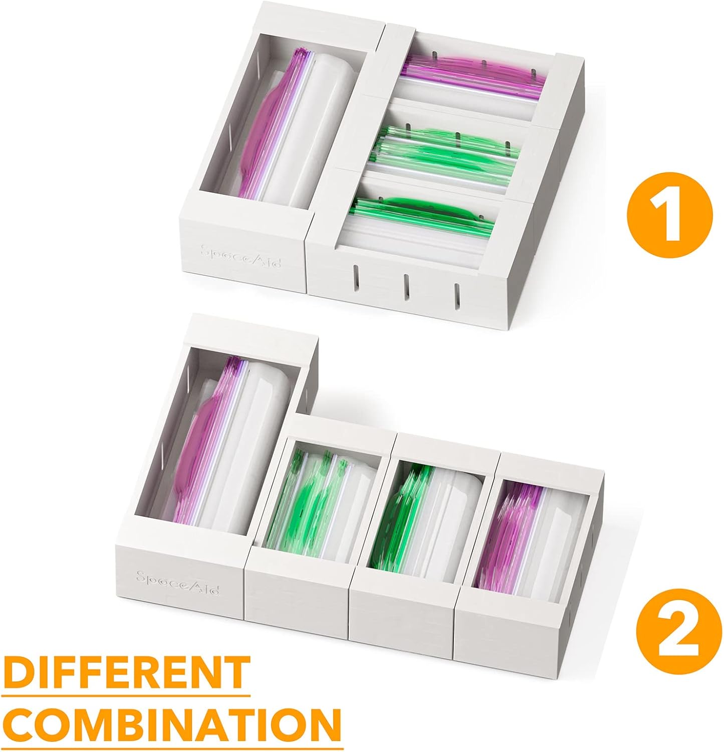 • 4 Boxes with 2 Sizes: Multiple boxes offer you a few customize combinations to organizer food-storage plastic bags, which can fit in different sizes drawers to meet your needs
