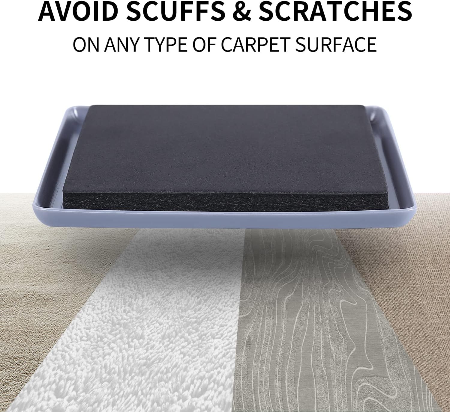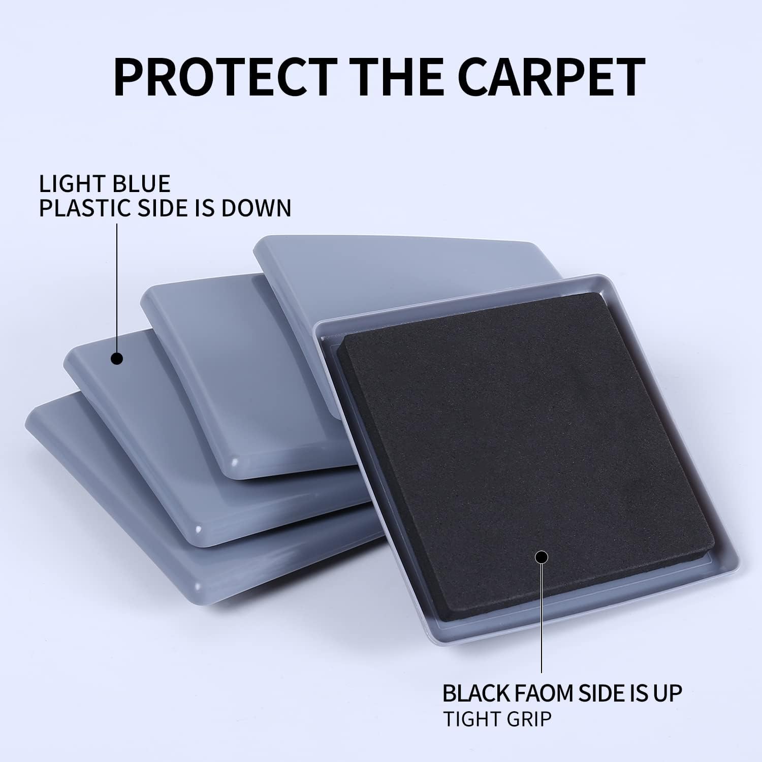 • ☛【Premium & Reusable】- Made of heavy-duty plastic and durable EVA foam, these 5" carpet sliders won’t rip or break. They grip securely under furniture for easy moving and can be reused.