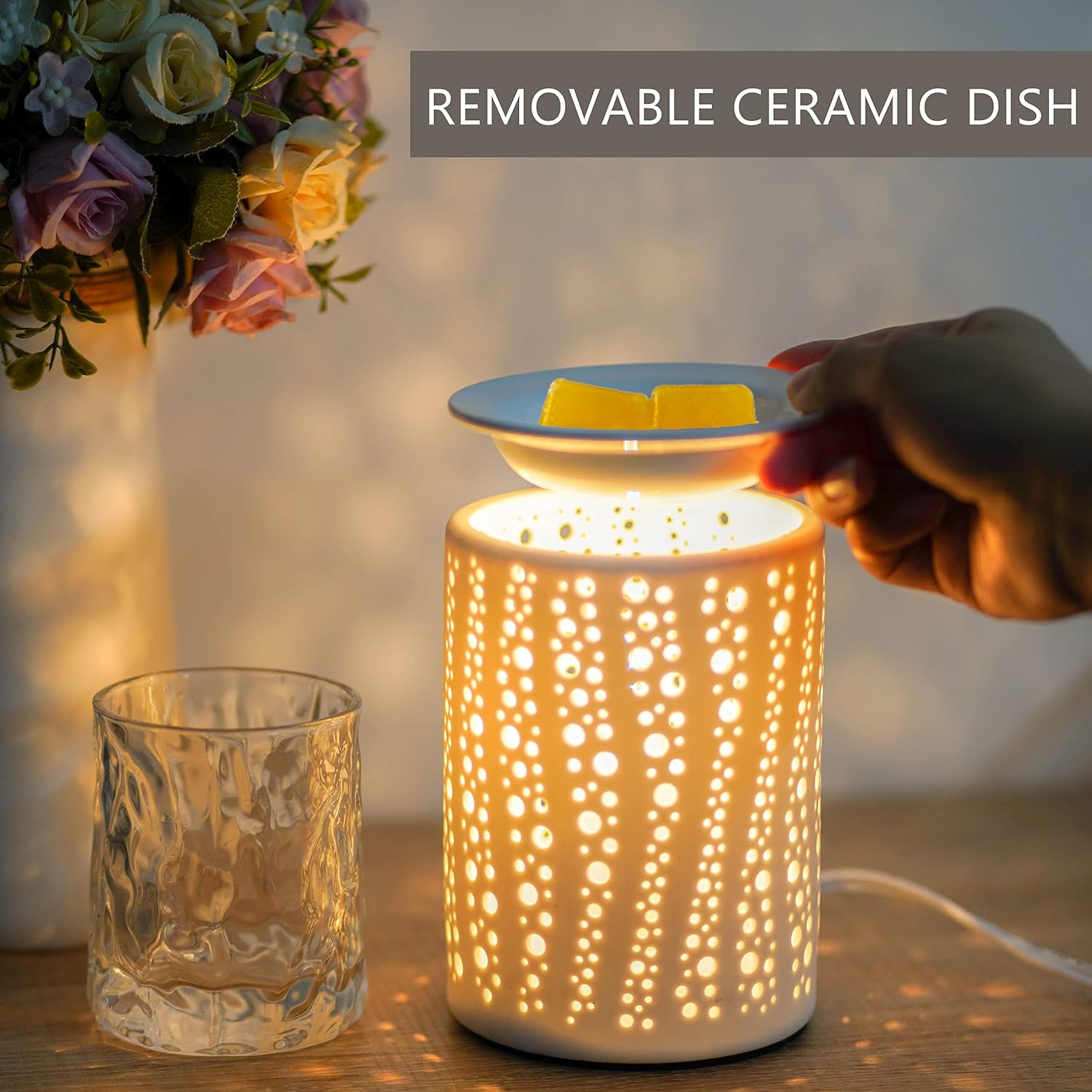 • 【2/4/8 Hr Timed Off】Classic hollow-out and modern integral pattern design. Durable ceramic material. Embedded with timer switch, you can choose either continuously heating or timed off heating for 2/4/8 Hrs. No worries about forgetting to turn off the warmer.