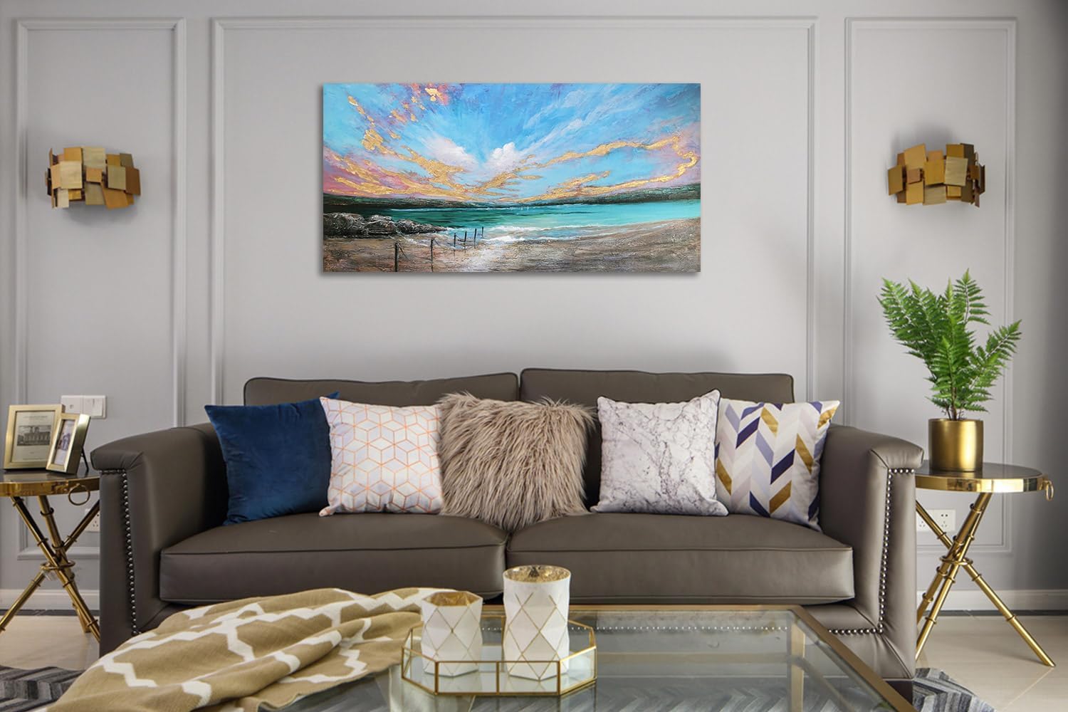 • Turquoise coastal wall art size: 40inx20in(100x50cm) gallery wrapped, it's our original design with hand-painted textured. The vibrant colors and intricate details of this piece will bring a sense of tranquility and peace to any room