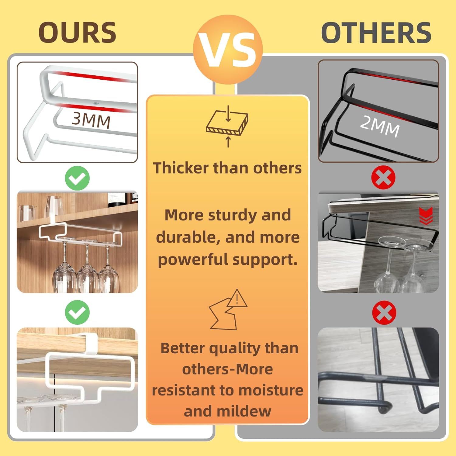 • Affordable Gift For Wine Lovers:this glasses storage holder rack provides a decent holding point and is very stylish.The sturdy materials ensure good strength and longevity. Get more than 2 PCS now for you or your friends who love drinking.Please Measure The Thickness Of The Board Of The Shelf Or Cabinet Before Purchase