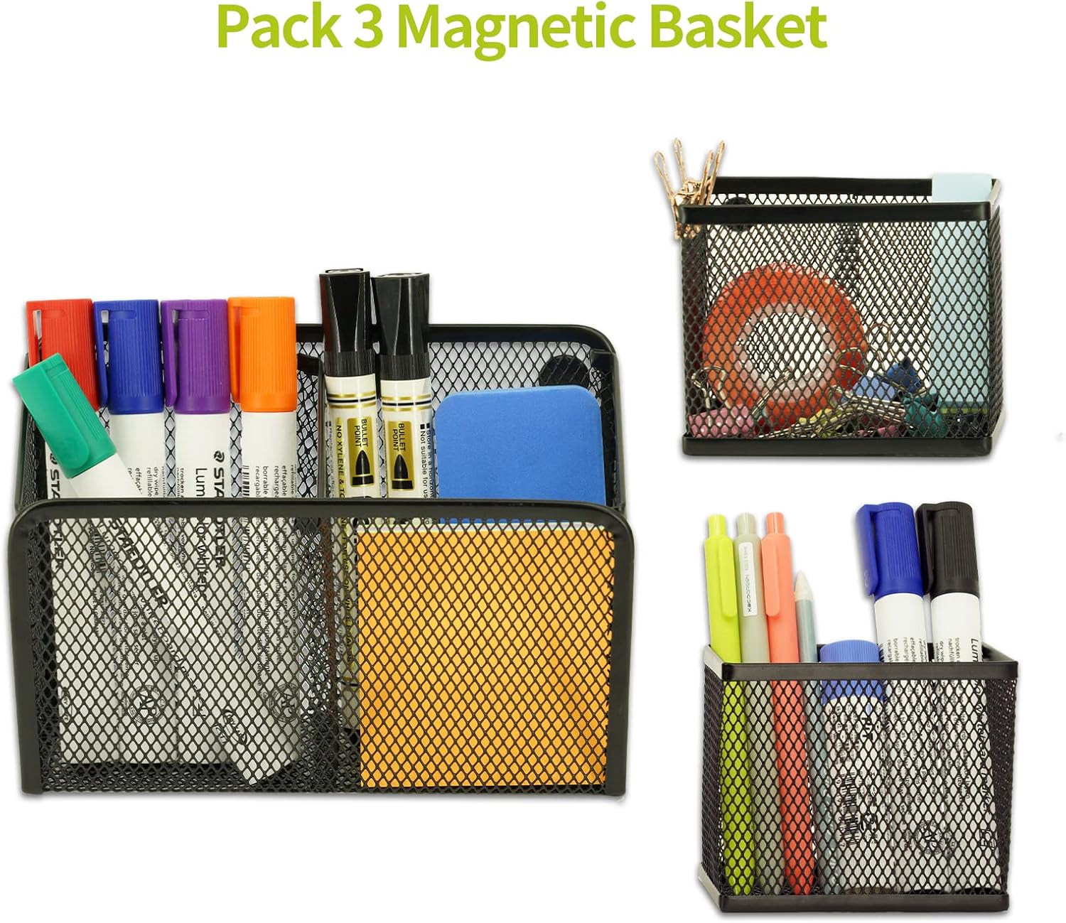 • [Magnetic Locker Shelf Organizer] Magnetic baskets by Neudeco brings organization with 3 pack pencil holder that sets office necessities and more in order. The 2- compartment organizer can be attached to the refrigerator for shared family storage, one cup holder can be given to each child for cleaner lockers, or you can keep them all for your own use to conduct much-needed home office work