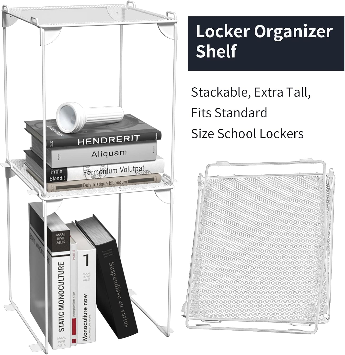 • ⭐Perfect Size: The total dimensions of this locker shelves are 11“ x 10” x 12“. With an extra-tall height of 12 inches, it fits into a typical school locker. With a tall foldable shelf, you can store more in a small space and eliminate the need for digging around anytime you need anything
