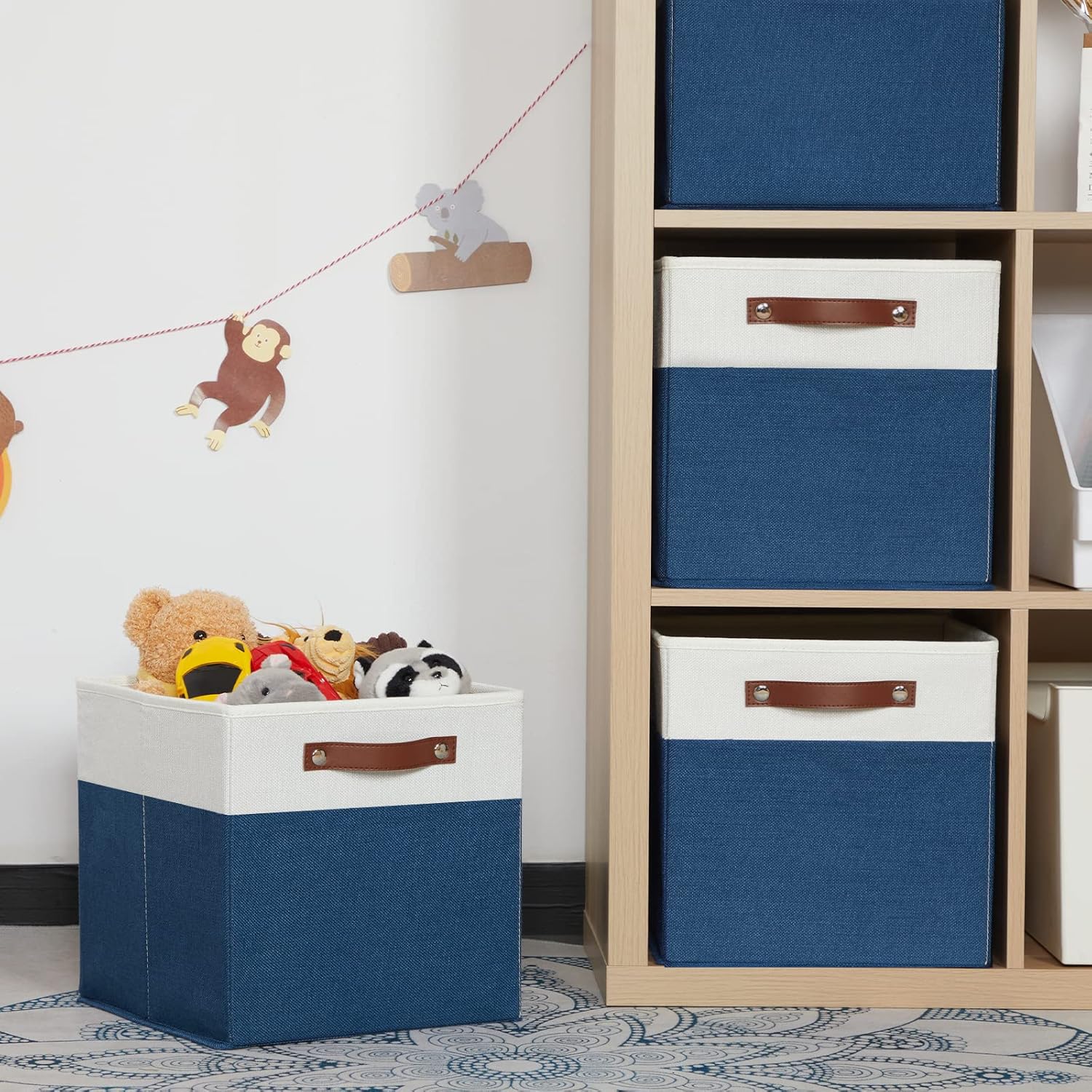 • 【Sturdy Leather Handles 】Sturdy thickened leather handles and metal iron buckles make cube storage basket easy to carry even with a heavy load. Cardboard is inserted at the bottom and sides to provide support, so that these decorative storage baskets to stand on, holding the shape well and can be used for a long time