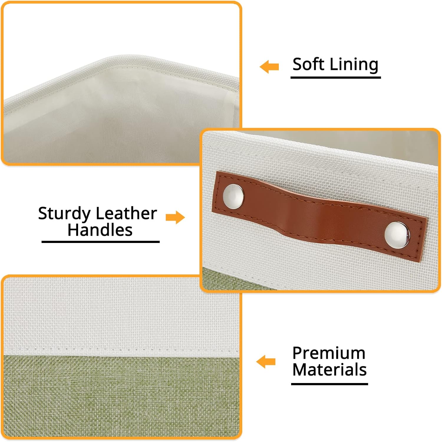 DULLEMELO Large Storage Basket 17"x12"x15", Fabric Storage Organizer Basket for Storage Clothes, Large Fabric Bin for Organizing Book, Storage Bin with Handles for Storage Toy (White&Green)
