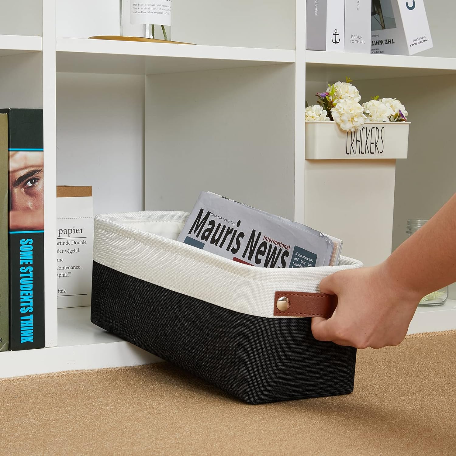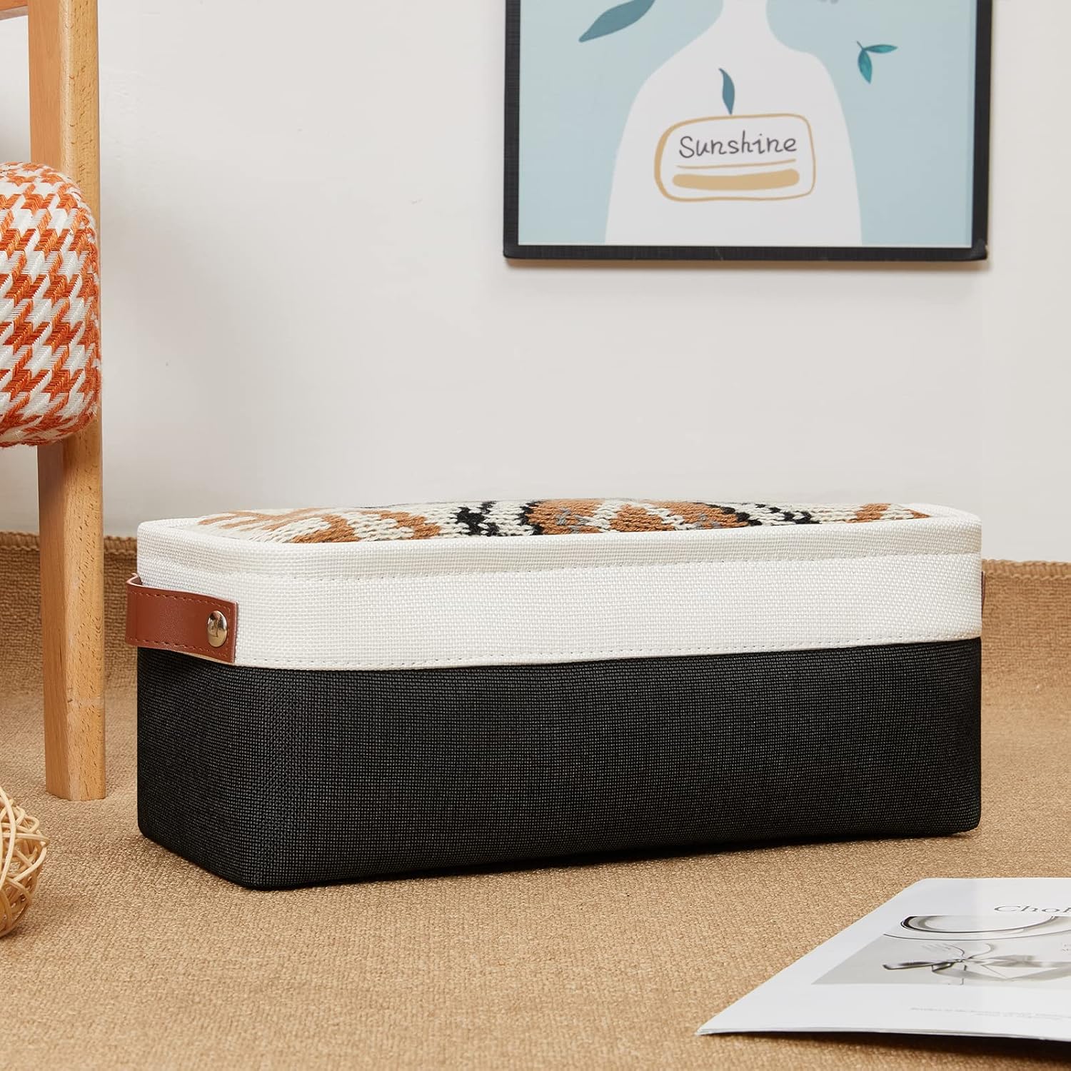 • 【EASY TO CARE】The narrow storage basket is sturdy and has no odor. Built to last these bins are reinforced with an O-ring on the top to give shape and structure so they are not machine washable. Lined with a thin linen fabric, the small storage bins are easy to clean, just wipe with a damp sponge or cloth.