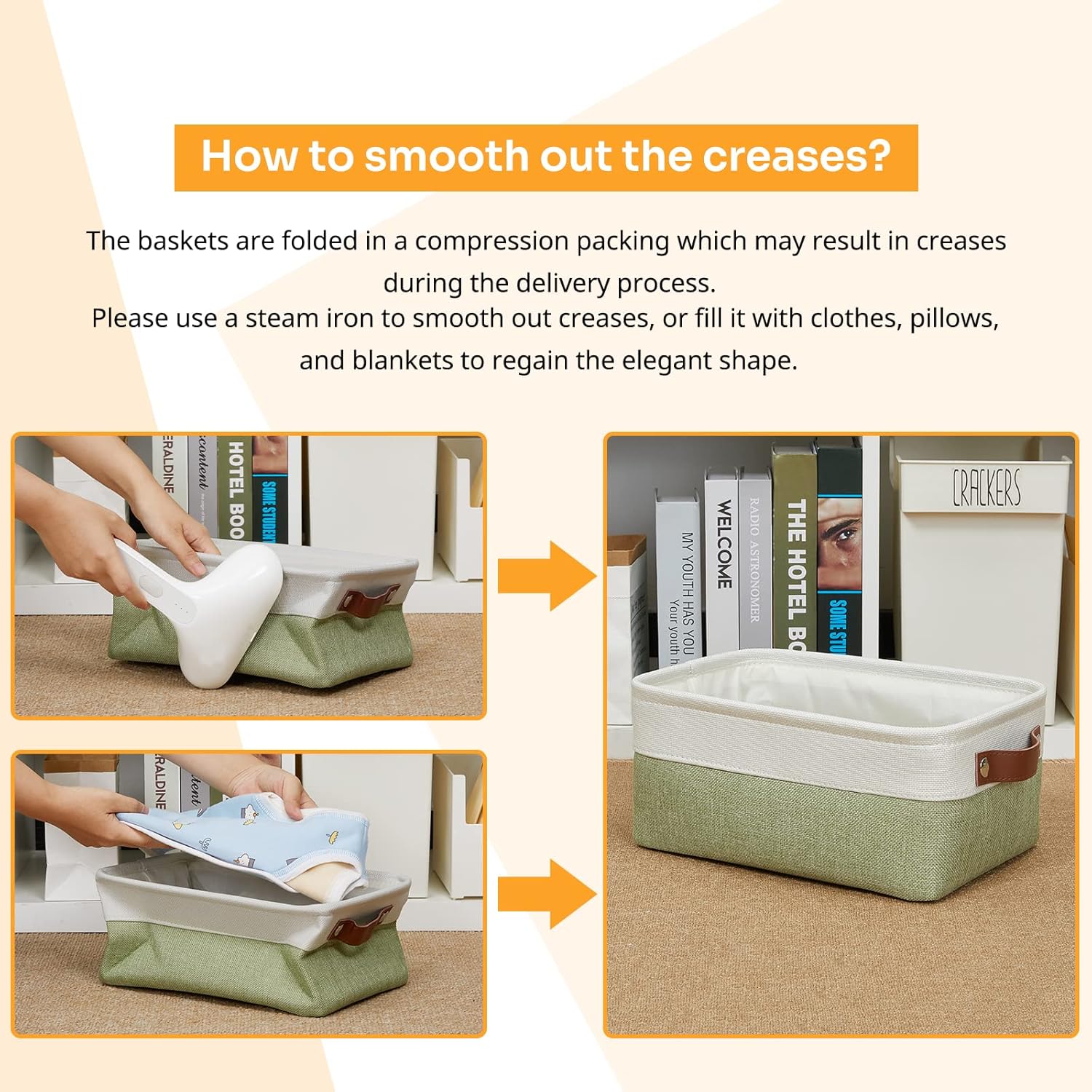 • 【EASY TO CARE】The small storage basket is sturdy and has no odor. Built to last these bins are reinforced with an O-ring on the top to give shape and structure so they are not machine washable. Due to lined with a thin linen fabric, they are easy to clean, just need to wipe with a damp sponge or cloth.