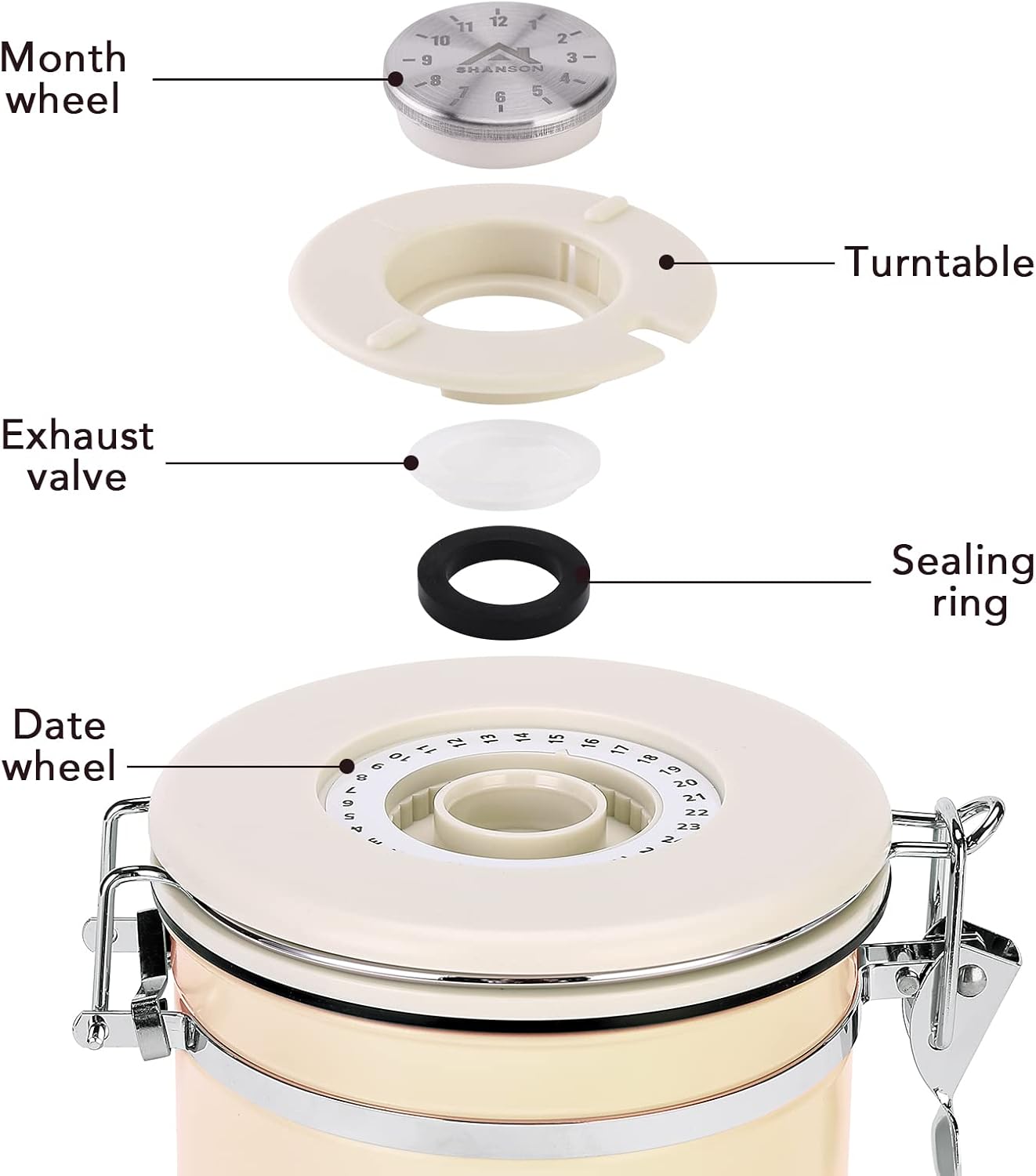 • 【TWO EXHAUST MODES】The canister features a CO₂ valve system and a silicone seal to lock in freshness and keep out moisture and air. A silicone gasket around the edge of the lid ensures an airtight seal when the lid is closed. Storing your coffee beans in this well-designed canister helps extend their freshness and ensures that every cup, even weeks later, tastes as good as the first.