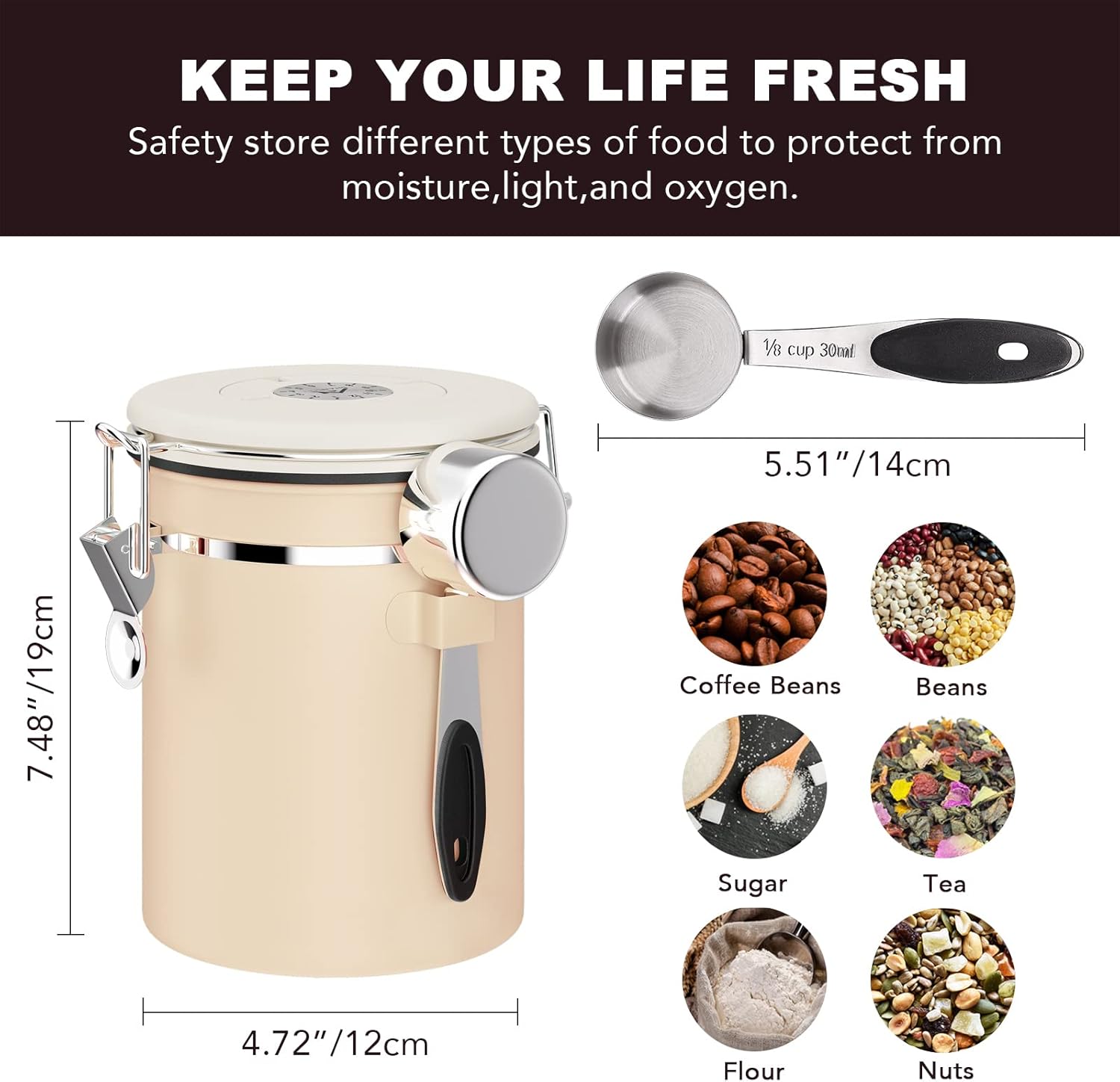 • 【BUILT-IN DATE TRACKER】A simple yet incredibly useful feature! The date tracker lets you monitor when the canister was last filled, helping prevent your coffee from going stale unnoticed. A stainless steel scoop is conveniently attached to the side, so you’re never left searching for a measuring spoon. Features a superior airtight seal for maximum freshness.
