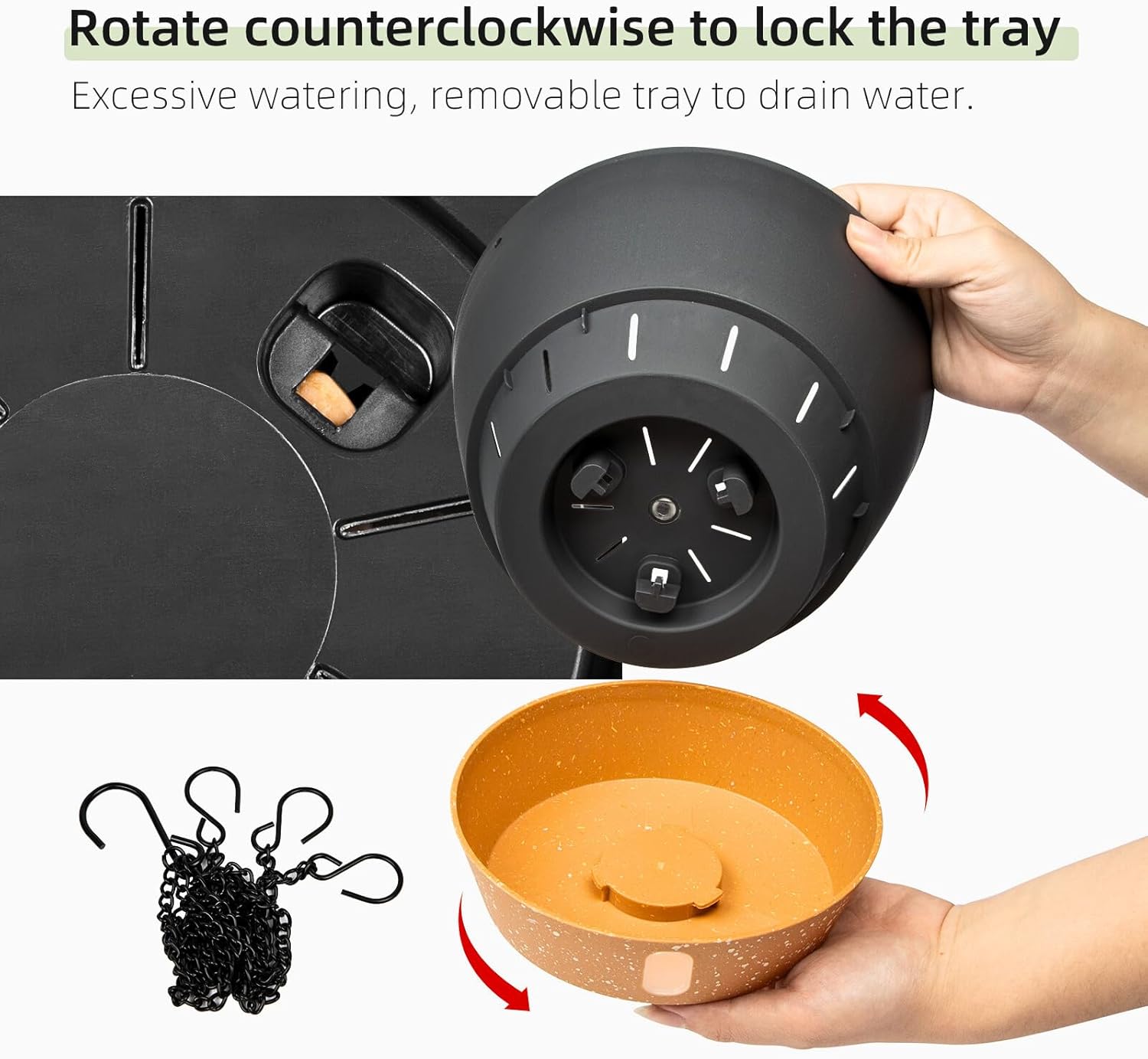 • SNAP-IN TRAY & WATER STORAGE: Snap-in tray is convenient to clean hanging plant pot. Hanging pots can overflow excess water from the edge, and the tray will store 7-14 days water for plants