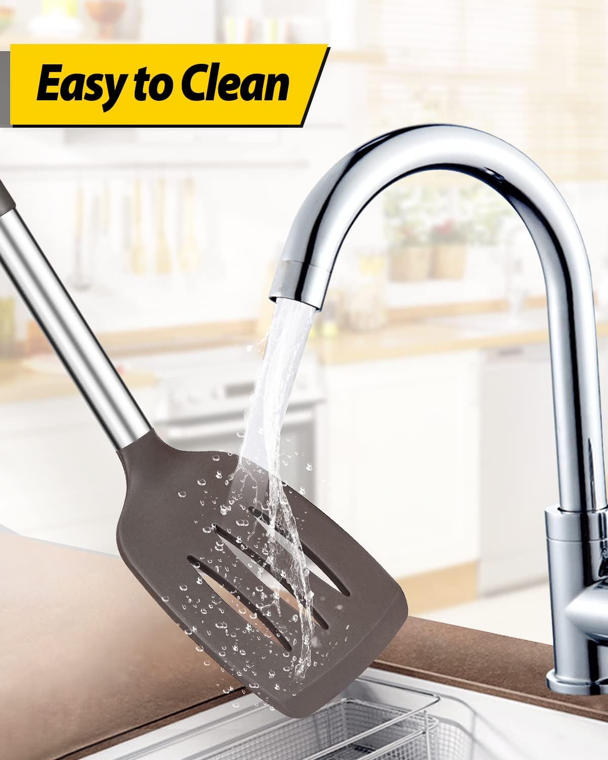 • Thoughtful Design : The good-quality 18/8 stainless steel keeps you away from the trouble of kitchen utensils rusting or breaking; This anti-scald silicone handle is not easy to conduct heat and is more comfortable to hold than traditional utensils