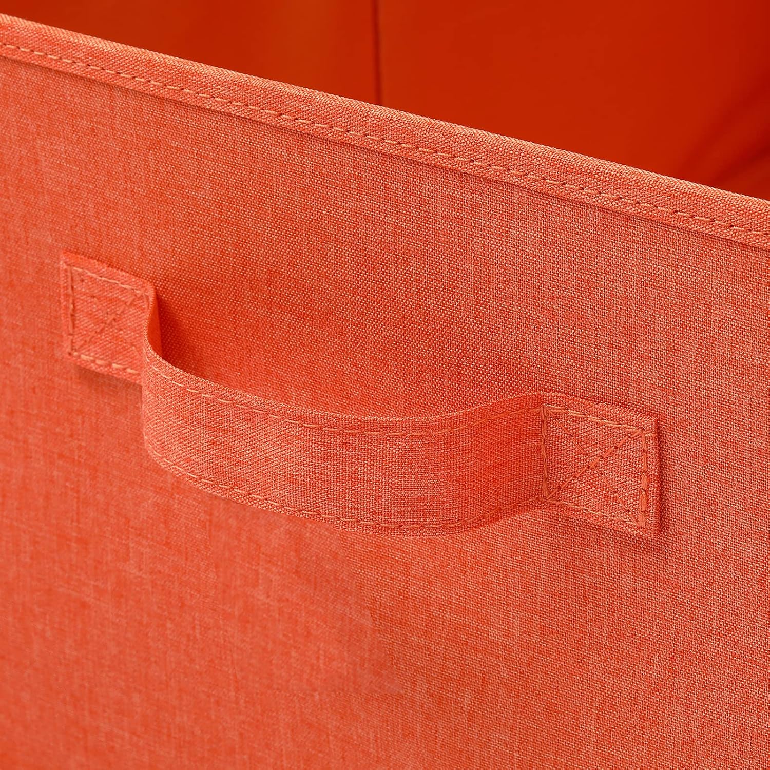 HOONEX Storage Bins with Lids for Organizing, Pack of 2, Storage Boxes with 2 Carrying Handles and Sturdy Heavy Cardboard, 16.5" L x 11.8" W x 7.5" H for Shoes, Books, Clothes, Nursery, Orange