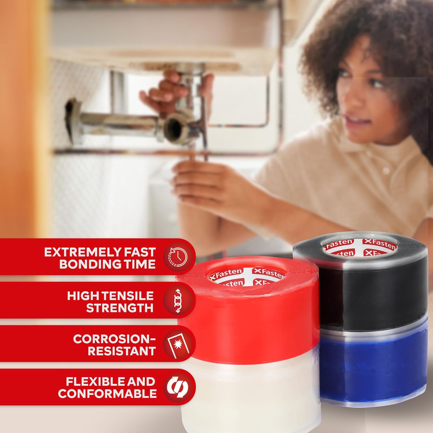 • No Messy Cleanup. This silicone tape for plumbing doesn't have adhesive, which means that IT DOES NOT HAVE ANY MESSY ADHESIVES THAT MAY LEAVE STICKY RESIDUE.