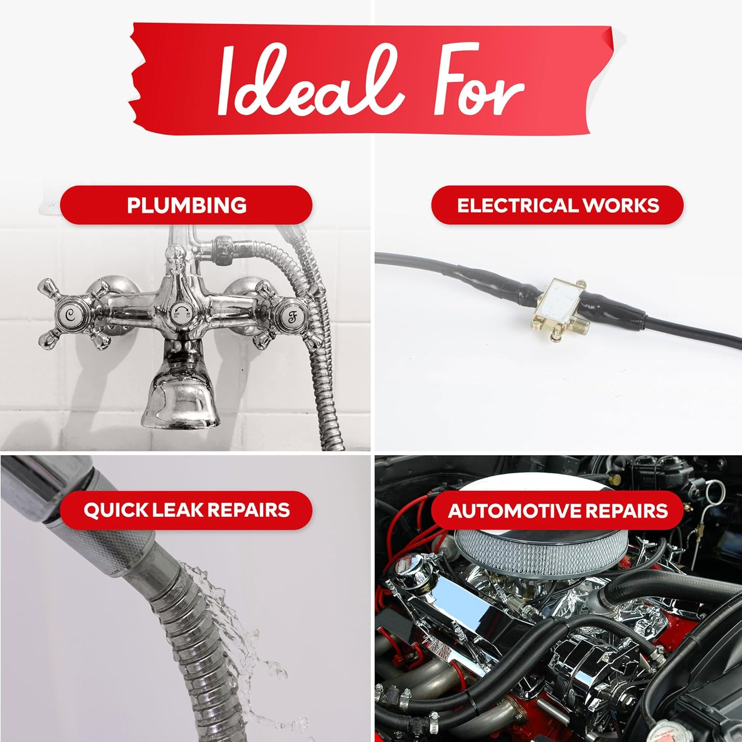 • Multiple-Use. Did you know that this rubber tape thick is not just a plumbers tape? You can USE THIS ADHESIVE FOR MANY APPLICATIONS such as pipe insulation, transformer insulation, patch a vacuum hose, emergency radiation hose patch, tool handle wrap, and other electrical, home, automotive, marine, hardware, and general repairs.