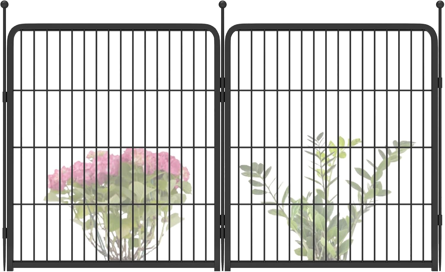 FXW Garden Fence Outdoor for The Yard – 32in(H) x 4.5ft(L) Heavy Duty Metal Animal Barrier for Dog and Rabbit, Decorative Dog Fence, 2 Panels, Black