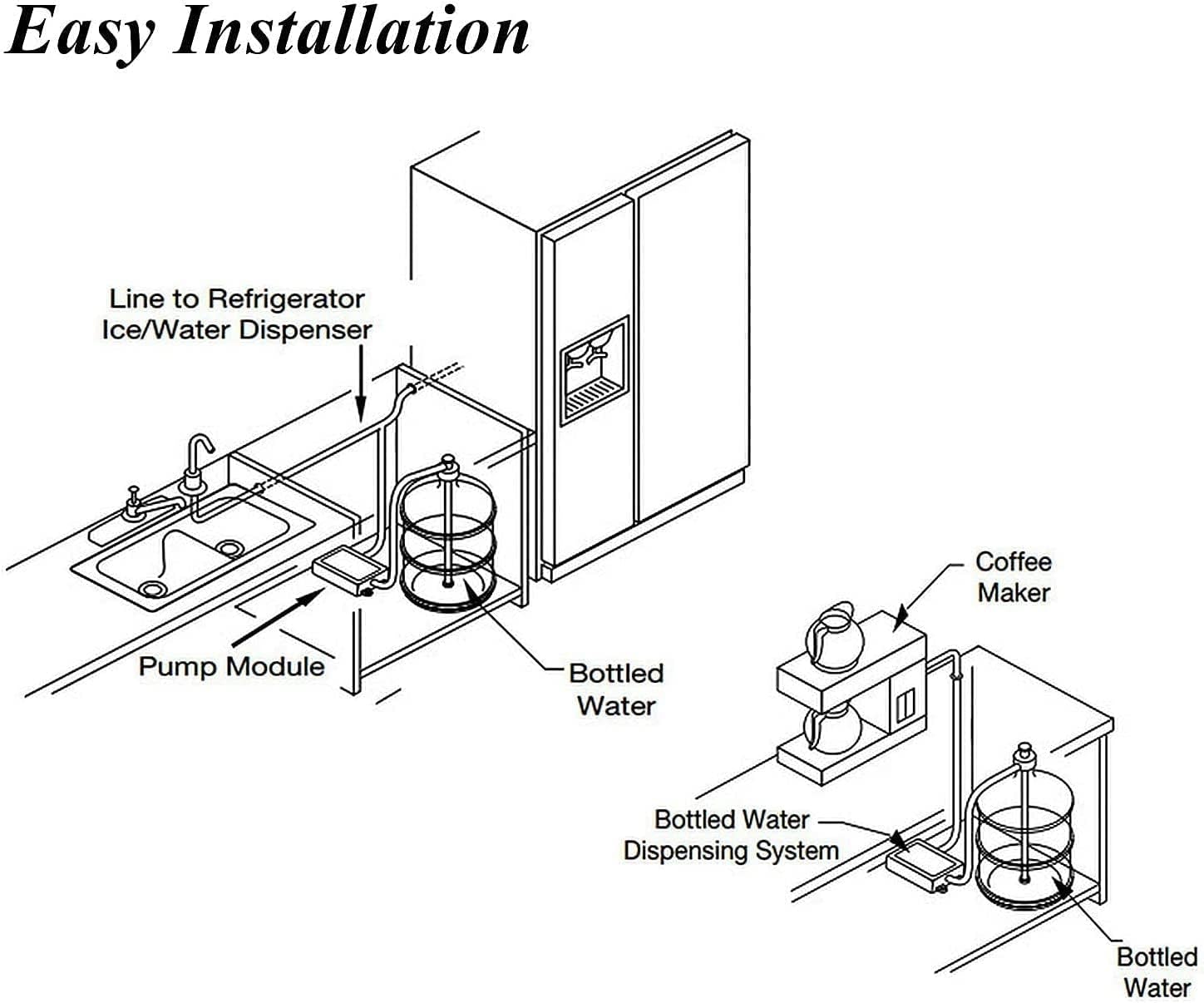 • WATER PUMP DISPENSER SYSTEM: This 110V bottle water pump system can provide power to a commercial 5 gallon jug of water. It delivers water under pressure to individual drinking water taps, providing hot or cold water anytime. Compatible use for refrigerators, coffee makers, tea makers and faucets etc.(this product is not including a faucet)