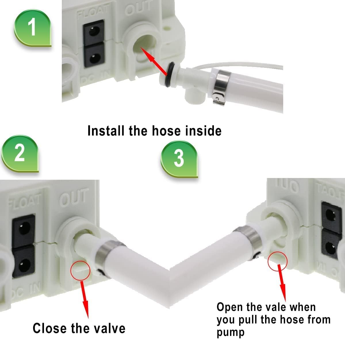 • NOTICE: ①Please follow the instructions to reinstall it when the pump does not work. ②If the power supply and motor can be started , pull out the power of the buoy and pour water to see if it can be used. Please fill water in the pump manually after long time unuse to restart the pump.