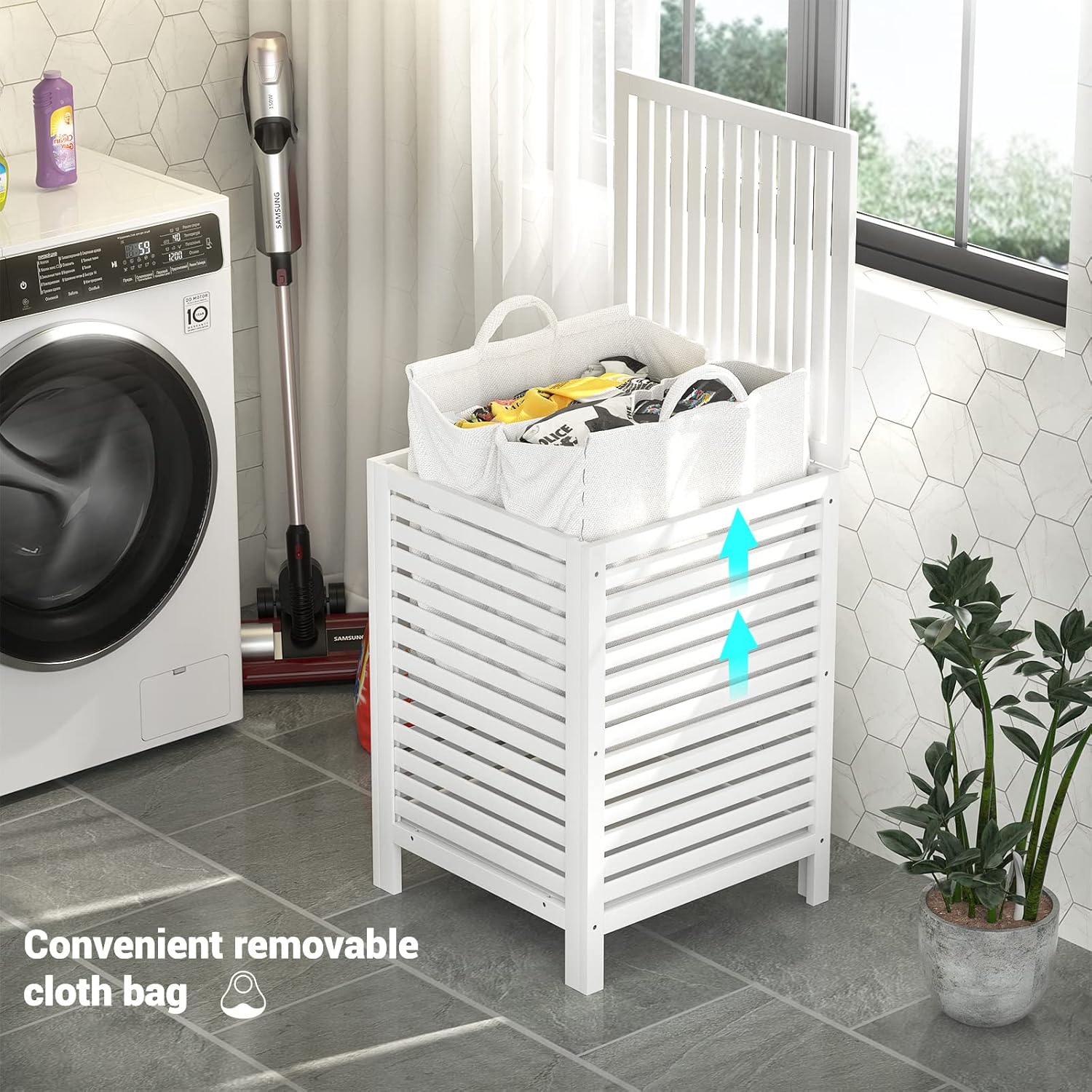 Homykic Bamboo Laundry Hamper with Lid, 120L Large Clothes Laundry Sorter with Removable 2-Section Liner Bag, Raised Laundry Basket Organizer for Clothing, Bathroom, Bedroom, Laundry Room, White