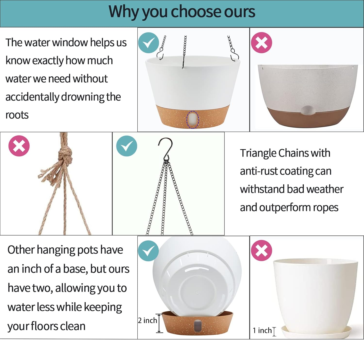 • With Hanging Chain and Hooks:The Chain is made of Stainless Steel and the Surface is plated with an anti-rust coating to further protect the chain from damage. Three Hooks design can increase the stability of the hanging planters. It can withstand inclement weather when used on outdoor plants.