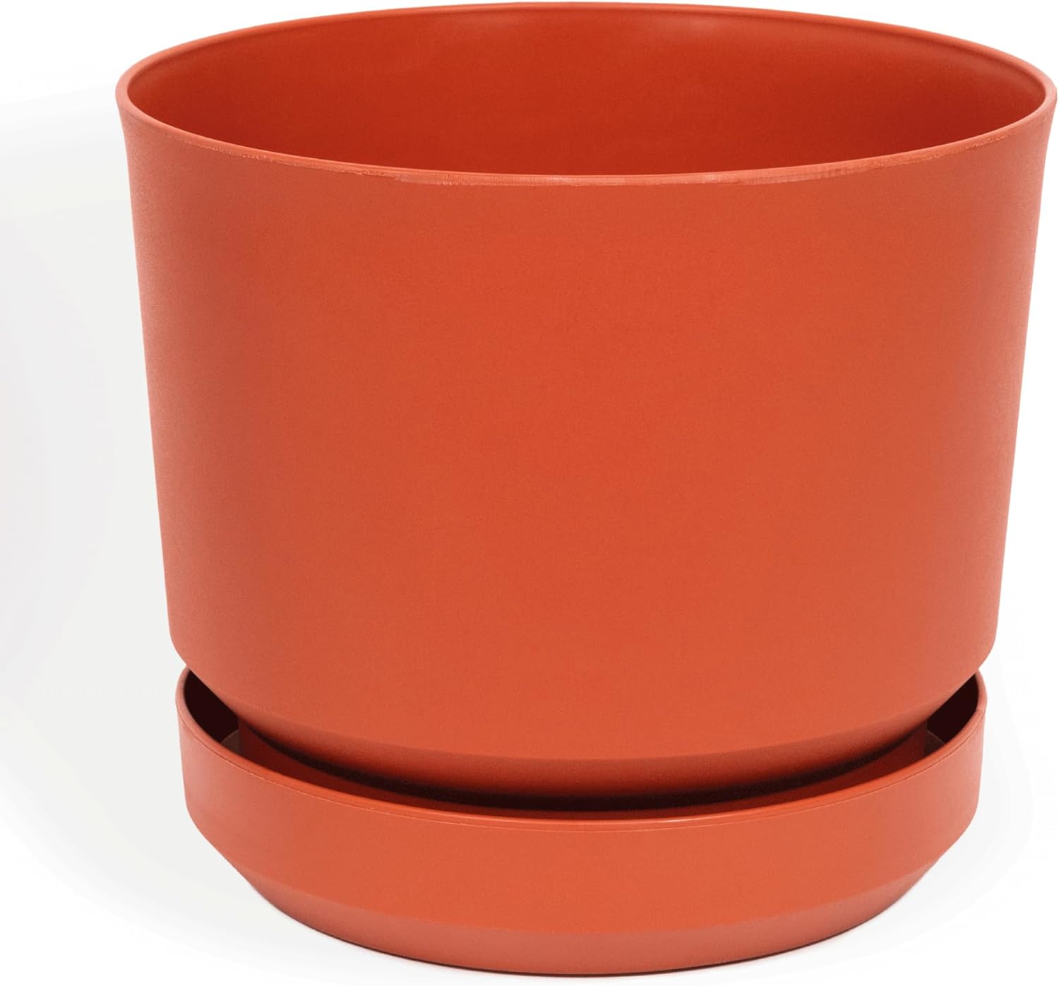 Elly Décor 12 inch Plastic Cylinder Planter Pot with Self-Watering Saucer and Drainage Hole,Lightweight & Extremely Durable, 12"x 12", Terracotta
