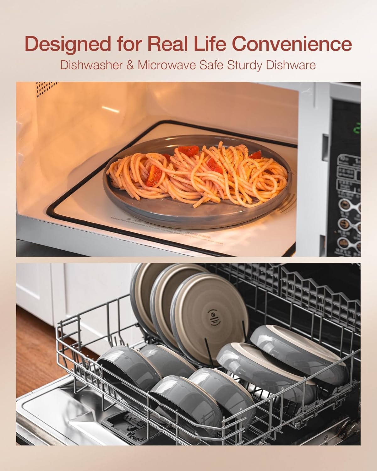 • 【DISHWASHER AND MICROWAVE SAFE】Our dishes have passed microwave and dishwasher safe testing at internationally accredited laboratories. Each plate and bowl is dishwasher safe and microwave safe.