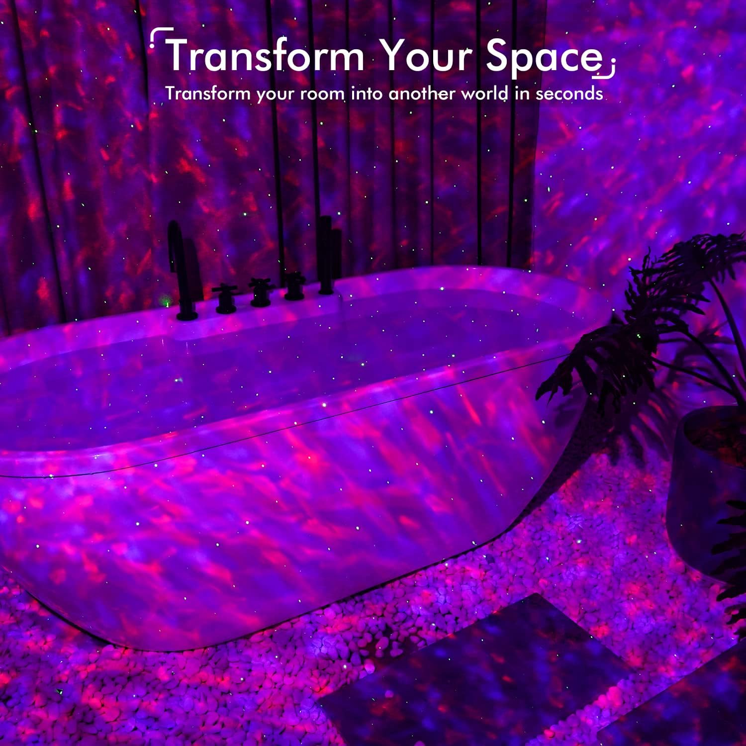 • Turn It On... Transformations Come - Our most advanced star and projection technology. Rossetta galaxy projector combines an ocean wave projector, night light, desk lamp, white noise machine, and bluetooth speakers all in one device, providing up to 35 x 35 ft of wide coverage - 80% more area than previous models. Easy to use, one button turns your room into a galaxy, projecting fading in/out or still star lights, and memorizing nebula cloud around your space with soothing music for relaxation.