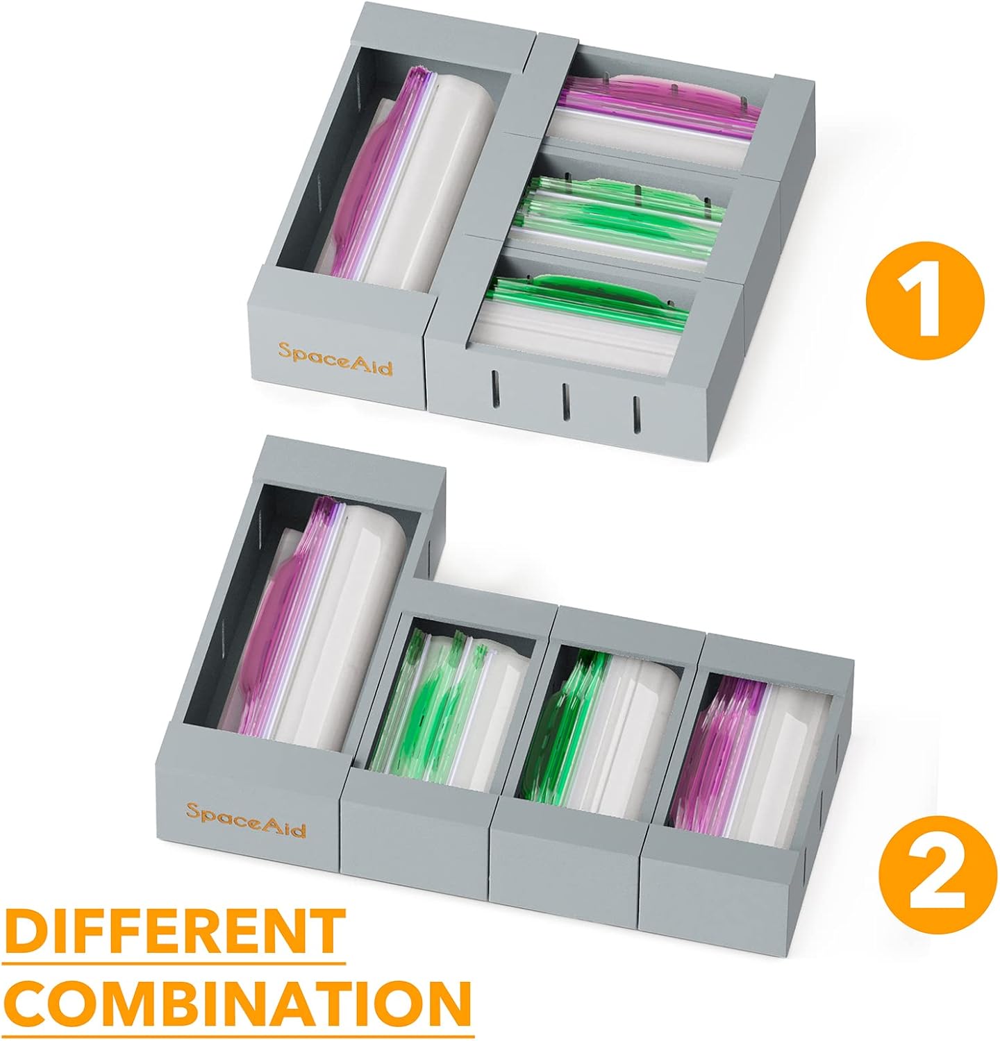 • 4 Boxes with 2 Sizes: Multiple boxes offer you a few customize combinations to organizer food-storage plastic bags, which can fit in different sizes drawers to meet your needs