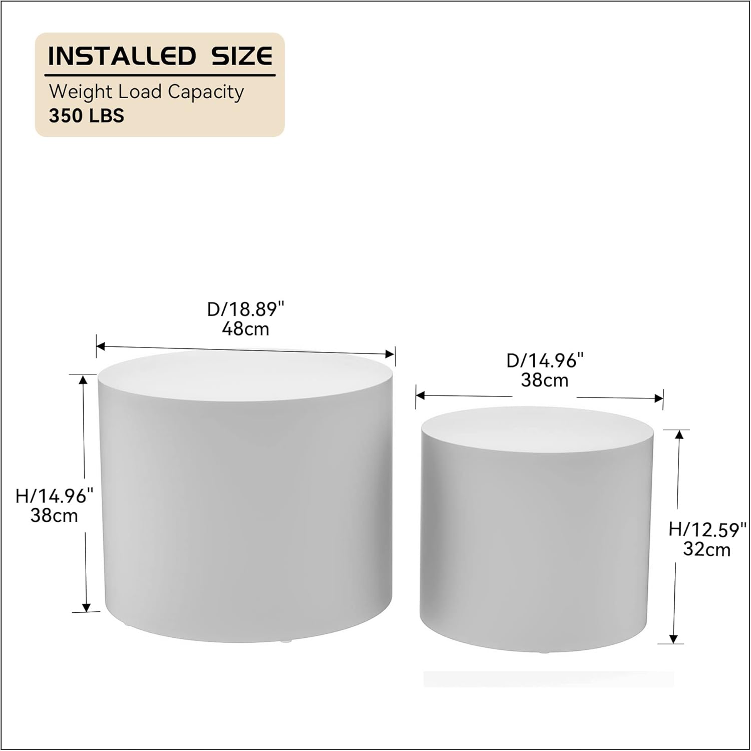 • ☕ The nesting sets consists of one Coffee table (Φ 18.9 x H 14.9 inch) and one Side table (Ø 14.9 x H 12.5 inch) can be arranged in multiple ways.You could slide the small one under the big one when you wanted more space. You can combine them as you like, make your room tidy and neat.