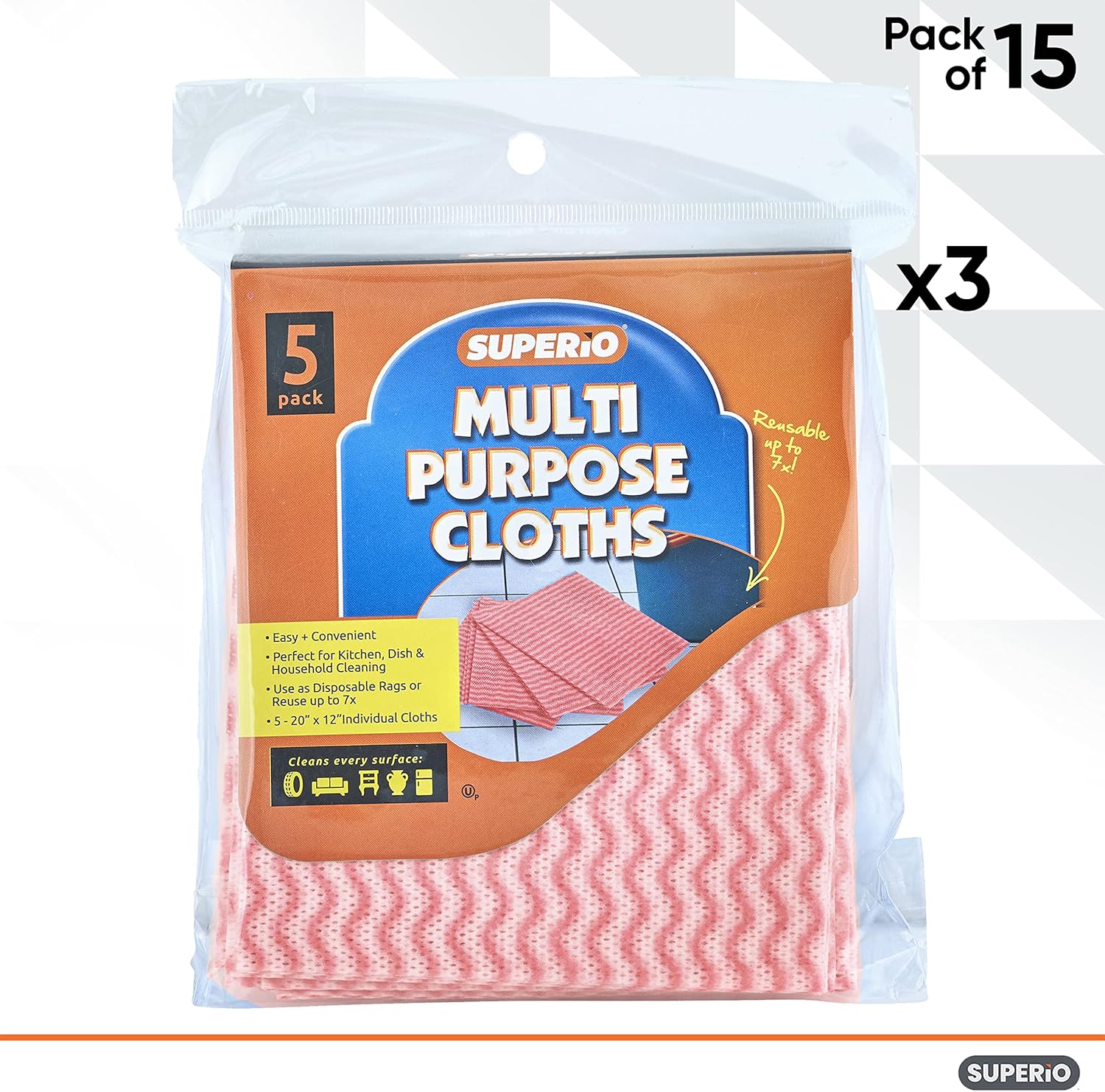 Superio Handy Wipes For Kitchen - Red Reusable Multi-Purpose Heavy-Duty Cleaning cloth for house, Bathroom, and office. Disposable Dish Towel (15)