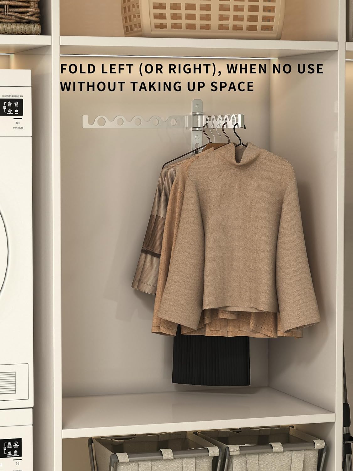 • 【STURDY AND RUSTPROOF】Stainless swivel steel wall hanging hangers can hang up to 10 hangers at a time, you can use it to place the clothes you need to wear in the near future, and it is convenient for your daily collocation, the hangers are made of high-quality stainless steel, which can effectively prevent corrosion and rust