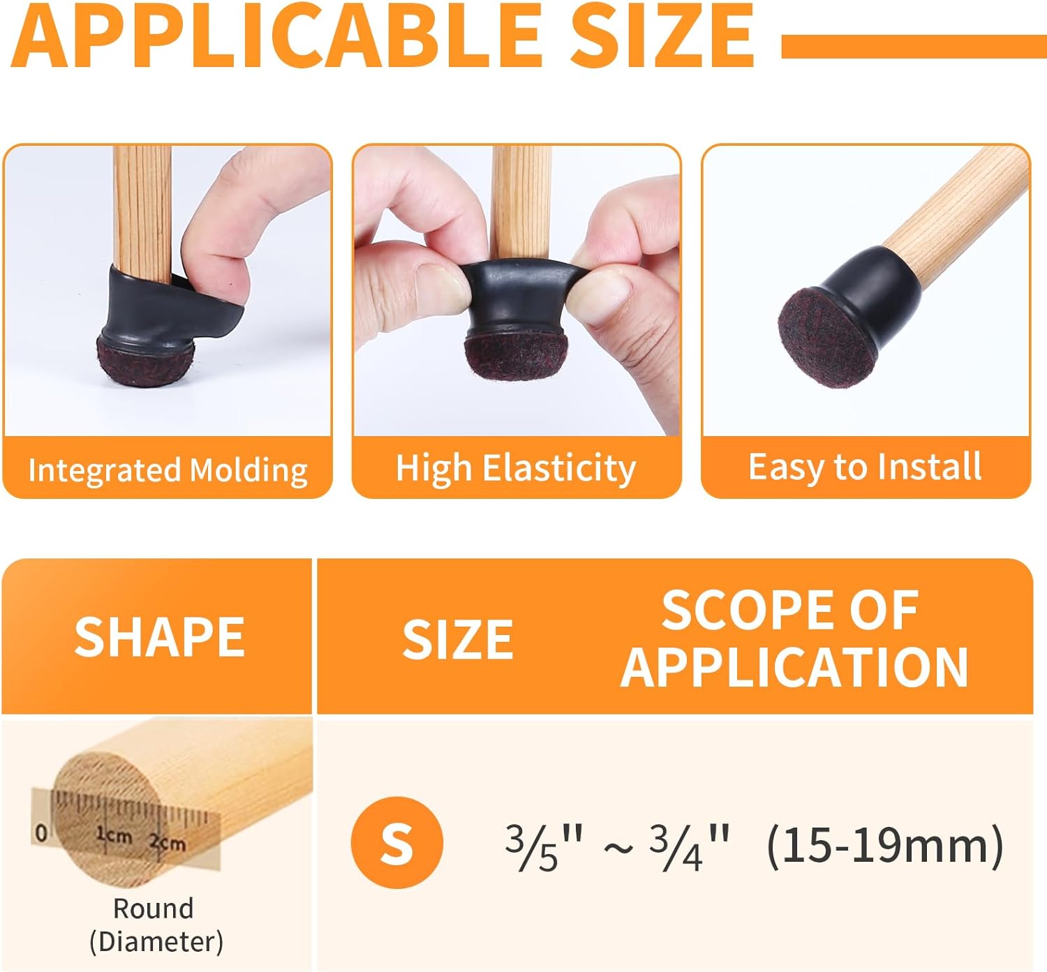 • ☛【Applicable Size】- Fit Round leg diameter3/5" to 3/4" (15-19mm).