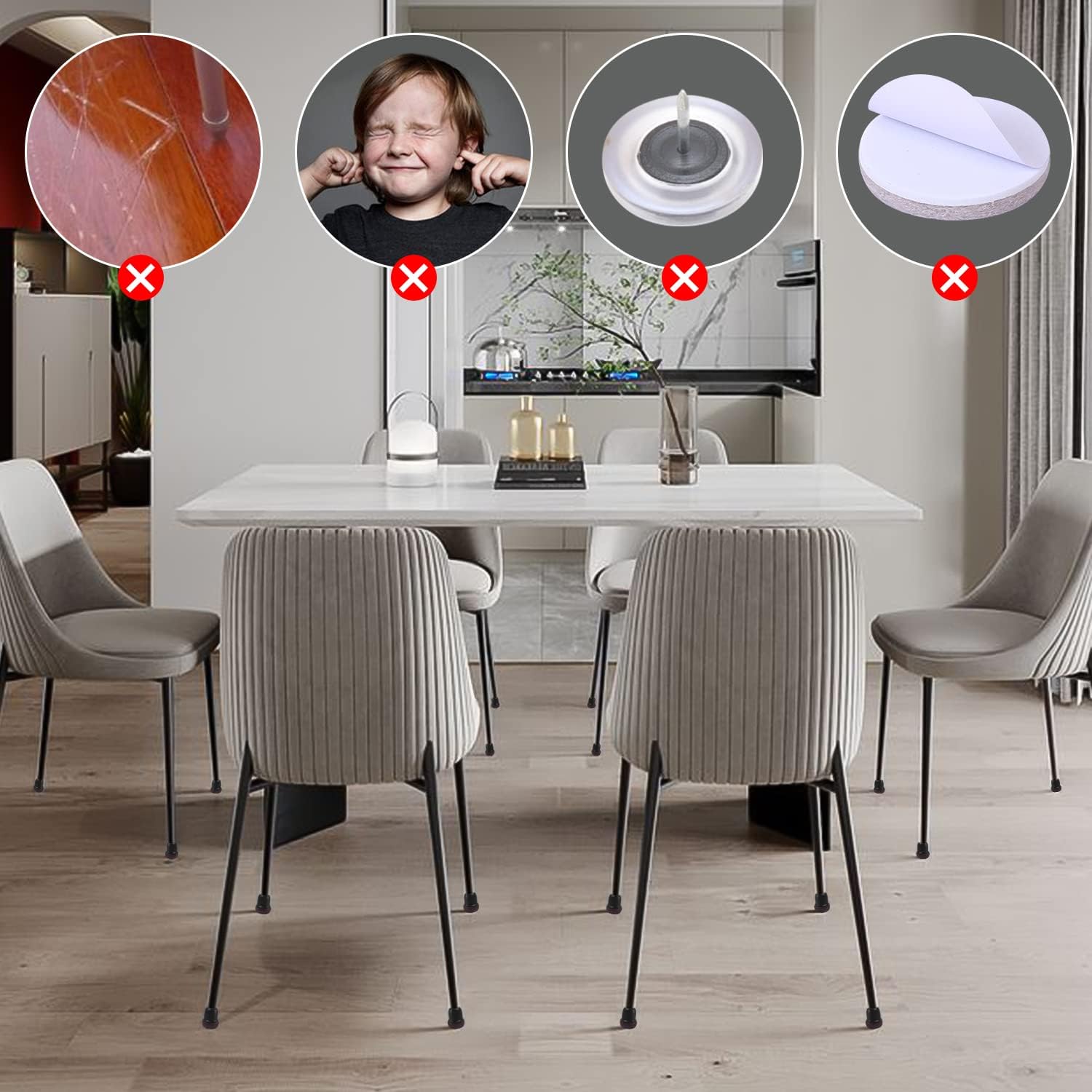 • ☛【Reduce Noise and Prevent Scratches】- Dining table leg covers for hardwood floors more durable to friction and no scratches. Felt furniture pads on the bottom reduces resistance and allow easy, smooth movement of furniture.