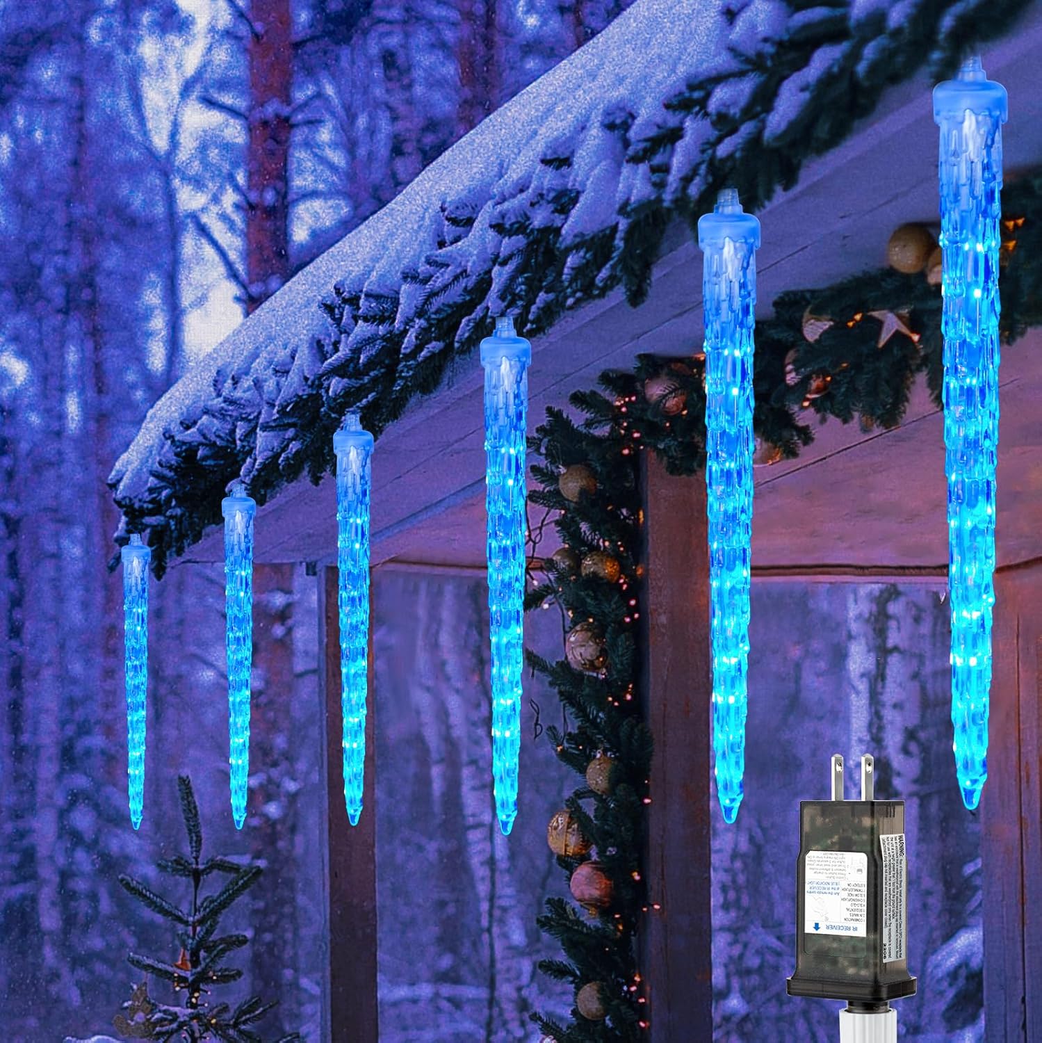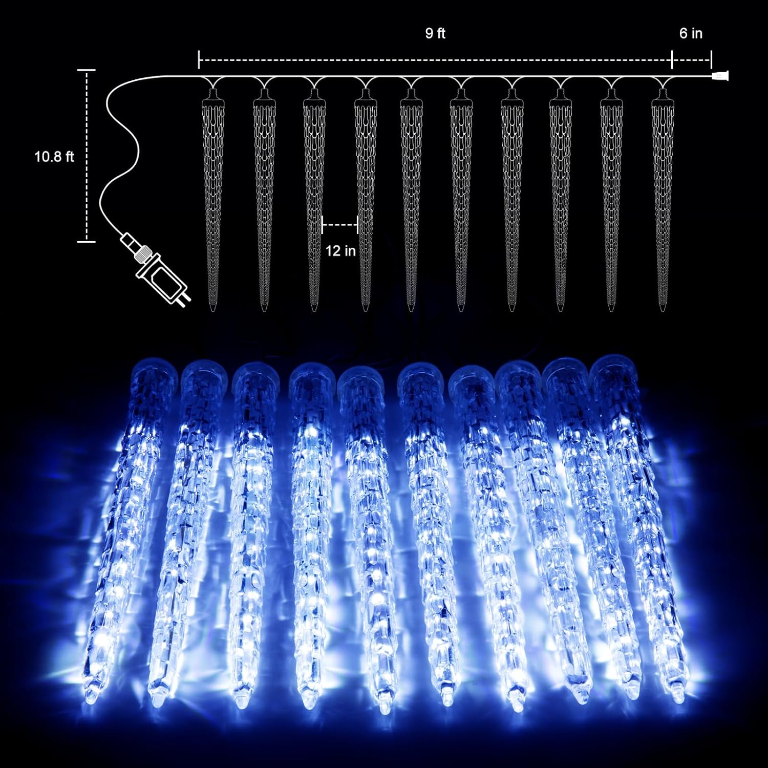 • 【Crystal Christmas Icicle Lights】Bring a classic ice crystal design to your home with 11-inch artificial icicles. With 10 tubes and a total of 240 icy blue LEDs, these lights create a winter wonderland in your front yard or garden- perfect for Christmas;