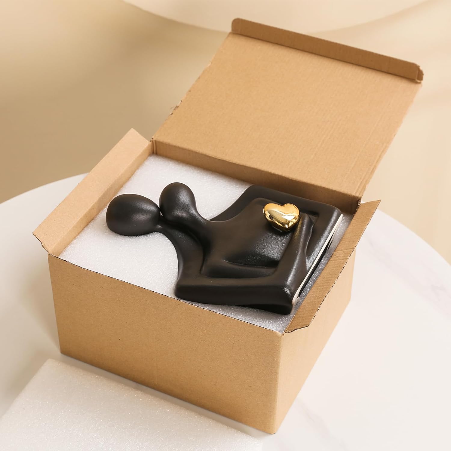 Porcelain Romantic Couple Figurines Statue Black Aesthetic Decorations Hugging Couple Sculptures - Modern Ceramic Sculpture Home Accents for Living Room Bedroom Coffee Table, Desktop, Bookshelf