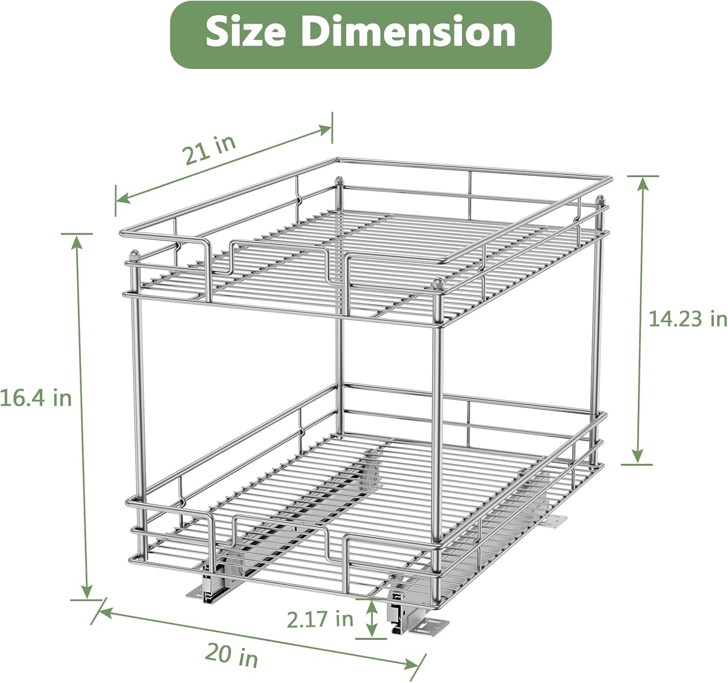ROOMTEC Pull Out Cabinet Organizer 20" W x 21" D, Kitchen Cabinet Organizer and Storage 2-Tier Cabinet Pull Out Shelves Under Cabinet Storage for Kitchen Chrome
