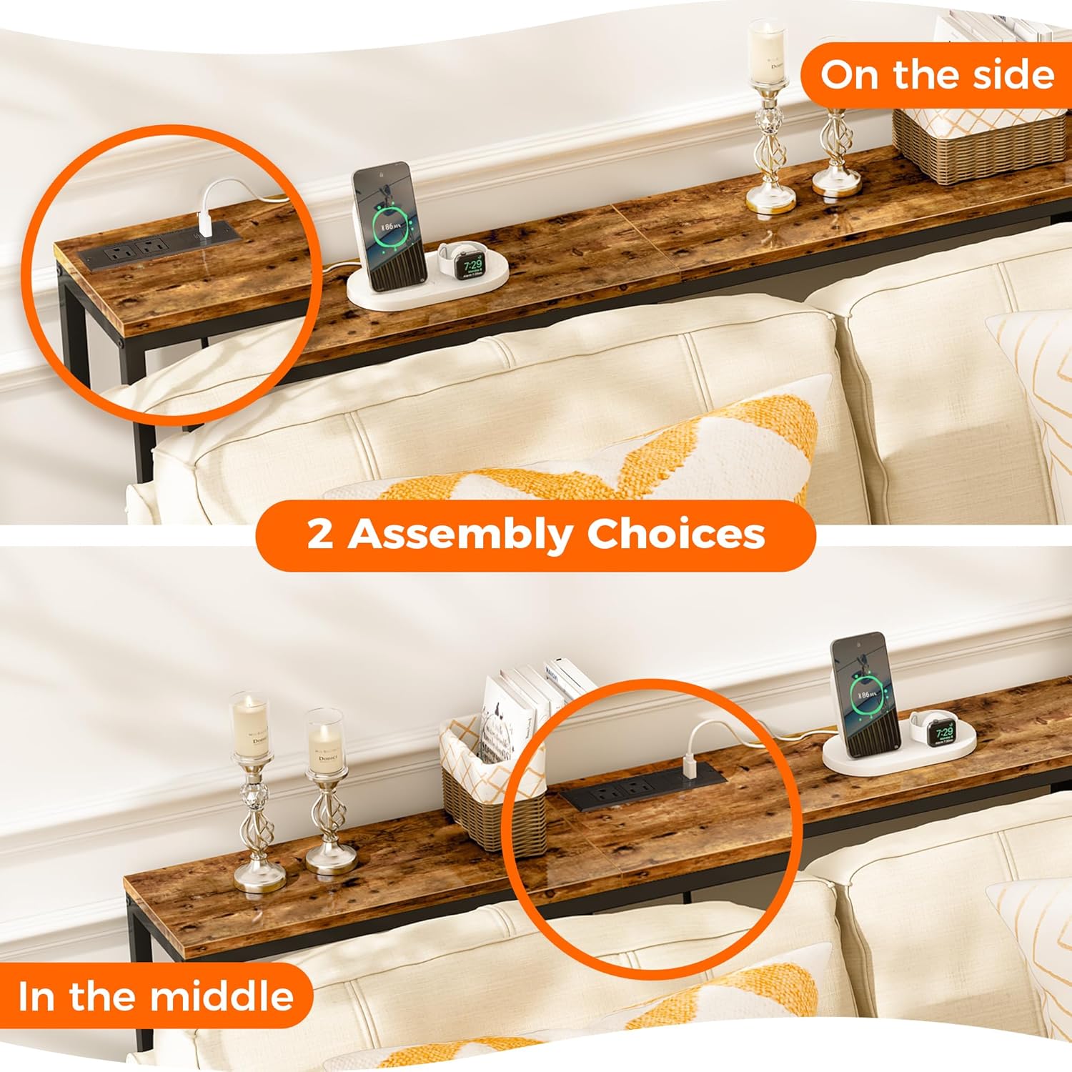 • [No Low Battery Warnings]: Imagine lounging on your sofa and brushing your phones to relax after a busy week. Don’t let low battery disappoint you. Let this sofa table narrow long with 2 AC outlets, 1 USB port and 1 Type-C Port provide close-at-hand power