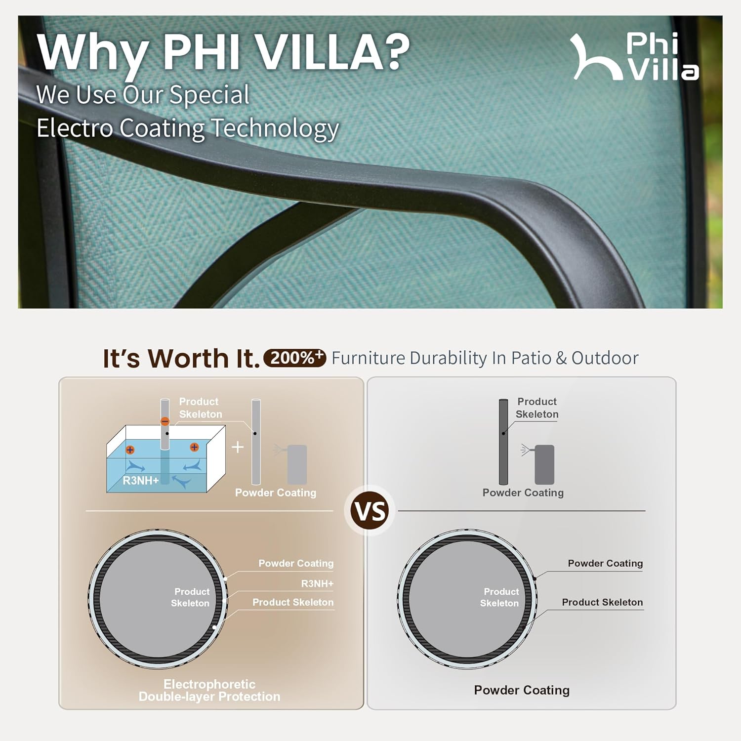 PHI VILLA 5 Piece Outdoor Bar Set, High Top Patio Bistro Bar Table and 4 Outdoor Swivel Bar Stools Chairs with Teal Textilene Fabric for Outside, Balcony, Garden and Yard