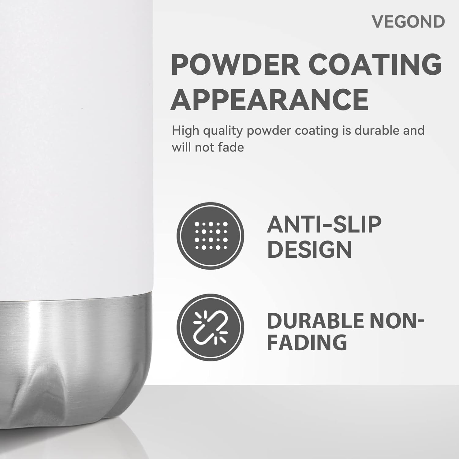 • All Day Heat / Cold Preservation : VEGOND double wall vacuum sports water bottles feature advanced heat preservation technology, keep your favorite drinks cold for up to 24 hours and hot for up to 12 hours. You can bring hot water, ice water, coffee, drinks with you. A 1.25”-diameter mouth accommodates small ice cubes and chopped fruits. The metal water bottle feature humanized design allows you to enjoy coolness in the hot summer and warmth in the cold winter