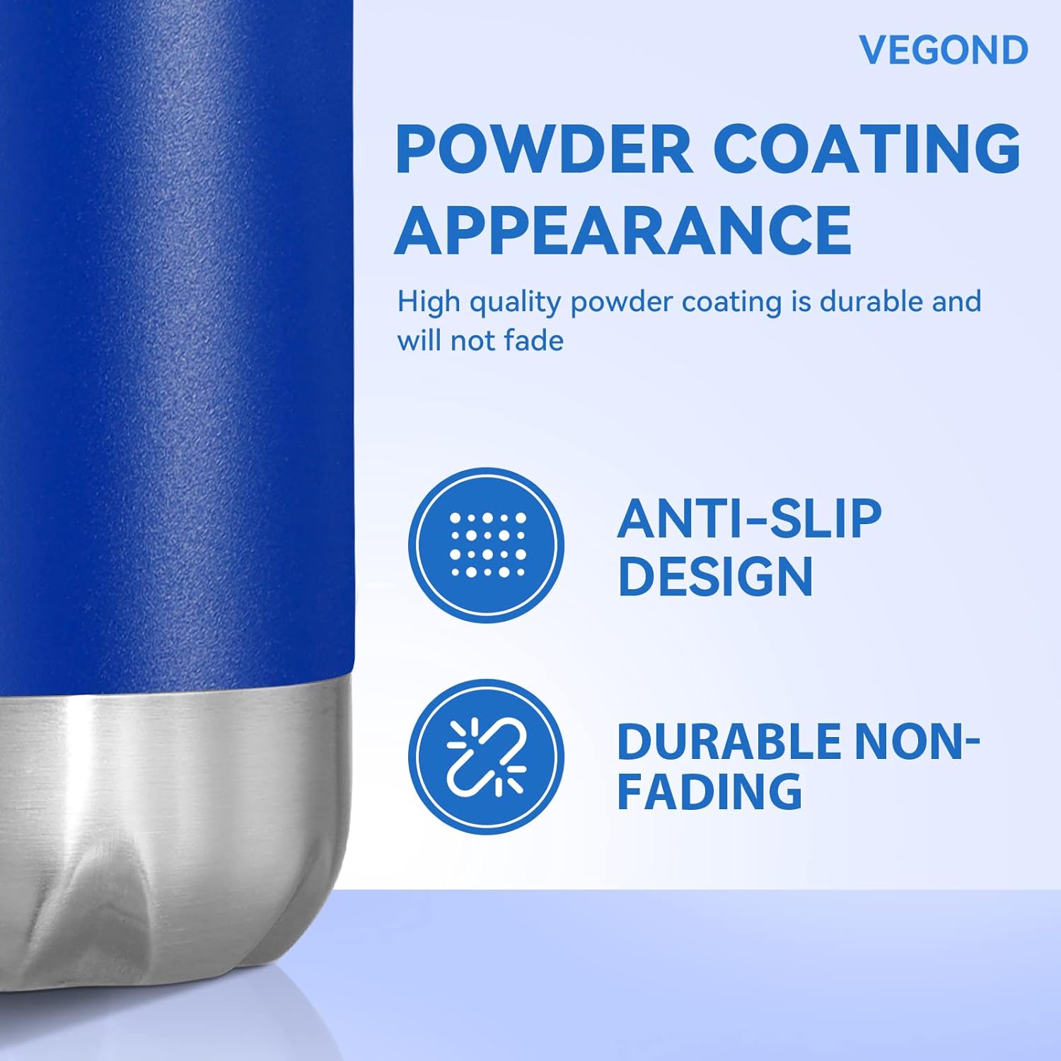 • All Day Heat / Cold Preservation : VEGOND double wall vacuum sports water bottles feature advanced heat preservation technology, keep your favorite drinks cold for up to 24 hours and hot for up to 12 hours. You can bring hot water, ice water, coffee, drinks with you. A 1.25”-diameter mouth accommodates small ice cubes and chopped fruits. The metal water bottle feature humanized design allows you to enjoy coolness in the hot summer and warmth in the cold winter