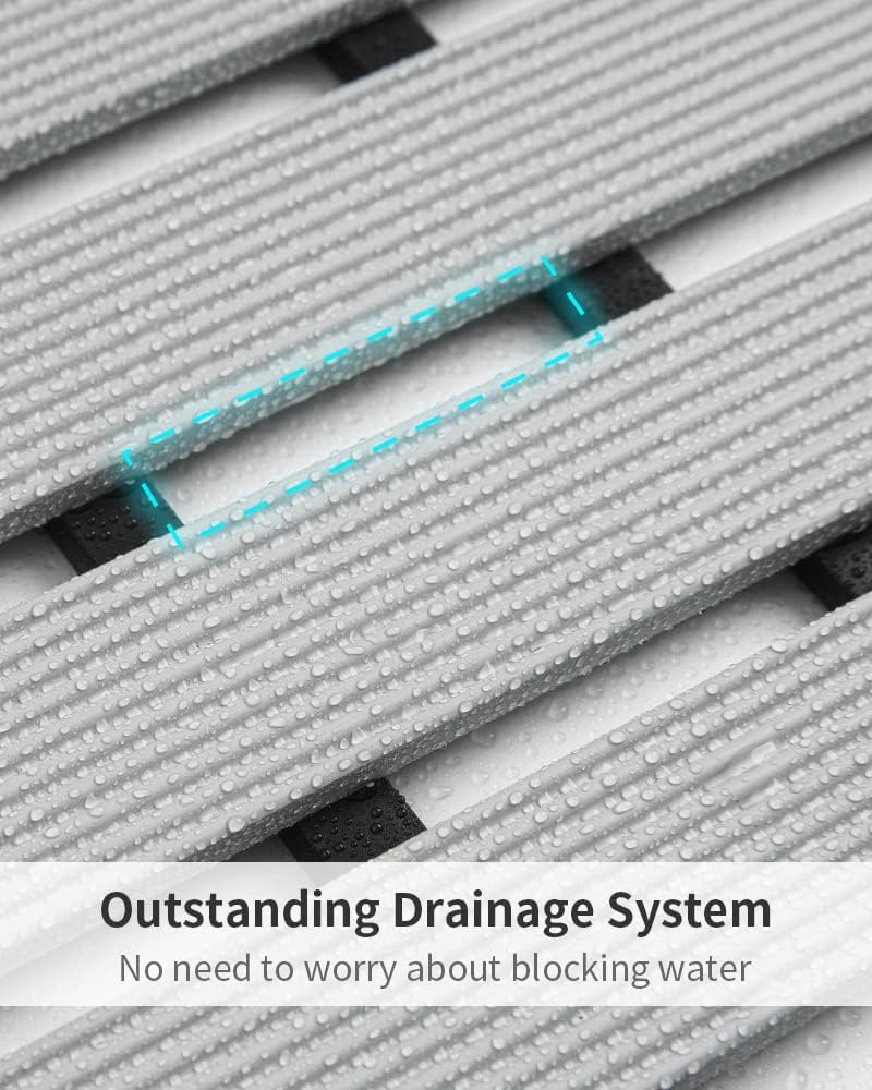 • 【Superior Drainage System】Elevated design as natural drain holes, encourage water to flow past the shower floor mat without getting caught, no need to worry about blocking water. On the other hand, it can keep your feet away from the cold floor, suitable for all the season