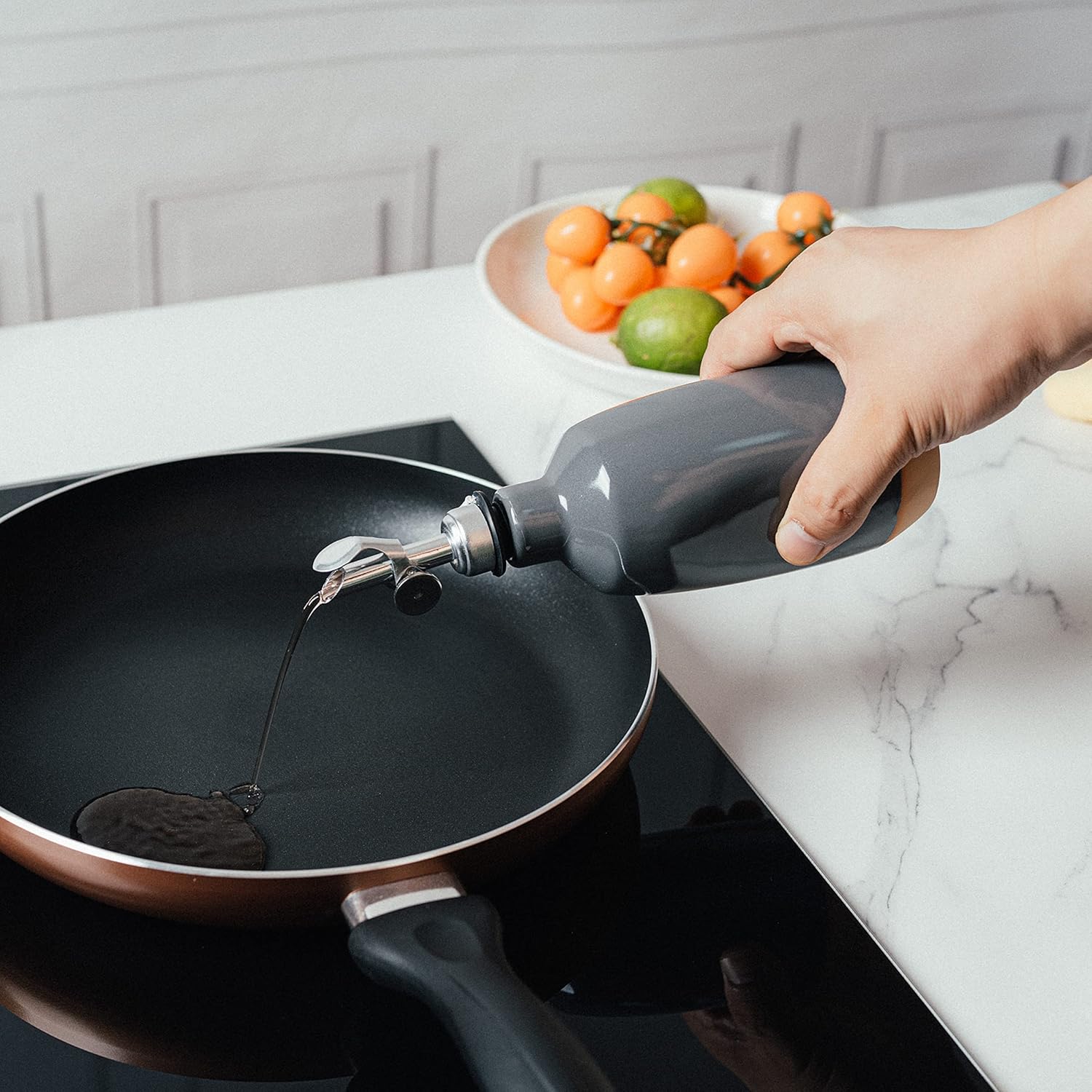 • Dazzle your friends and family and take your drizzles to the next level with this Dark Grey Cruet by Gute. The cruet features a bold motif, a subtly asymmetrical, grey playfully askew that is not only practical but perfect for entertaining inside and outside! With its classic round shape, the vessel is not only extremely elegant and simple to put in center of your dinner table, but also keeps oil and vinegar in the front of your mind. An excellent gift for any occasion to remember!
