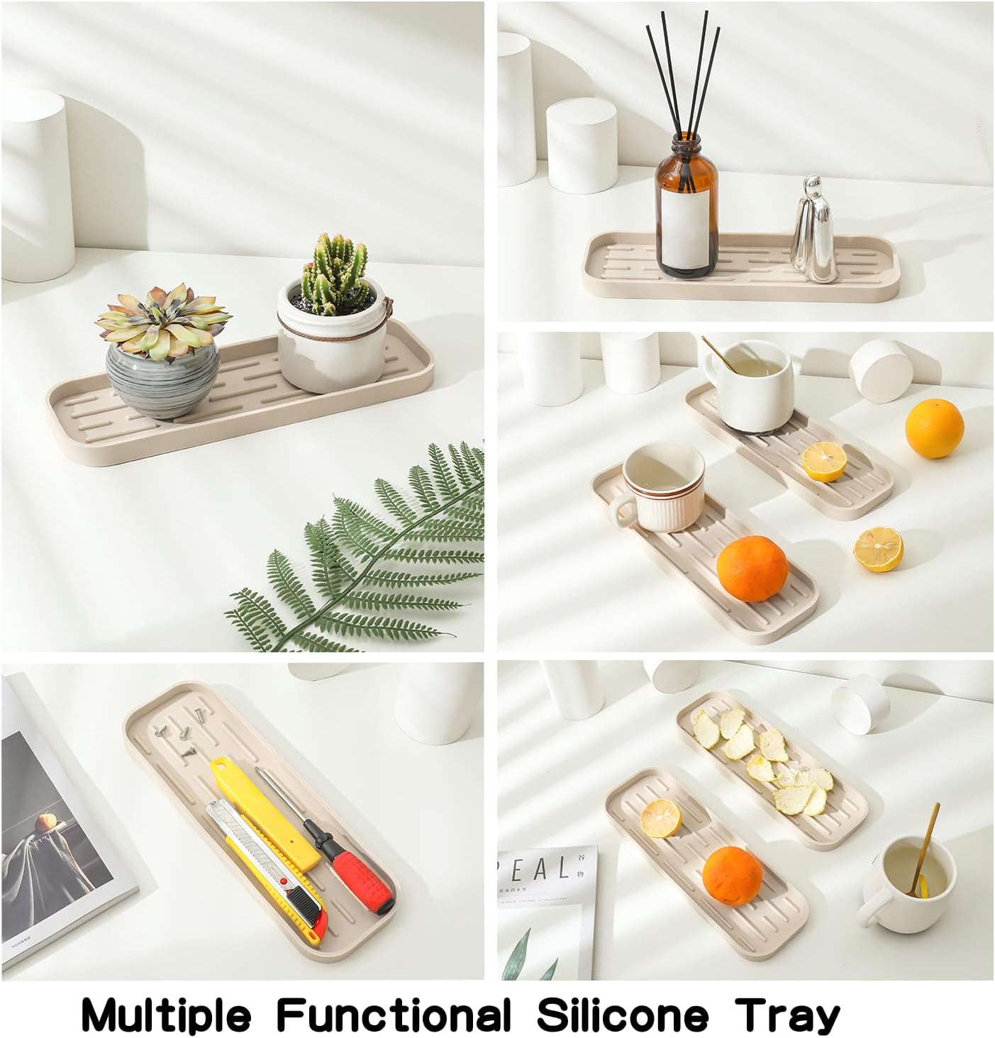 • RAISED EDGE & NON-SLIP BOTTOM:The non-slip bottom design can make the silicone organizer tray stable on the sink or countertop.The 0.67-inch high raised edge keeps water or other dirt overflow to keep your counter clean.