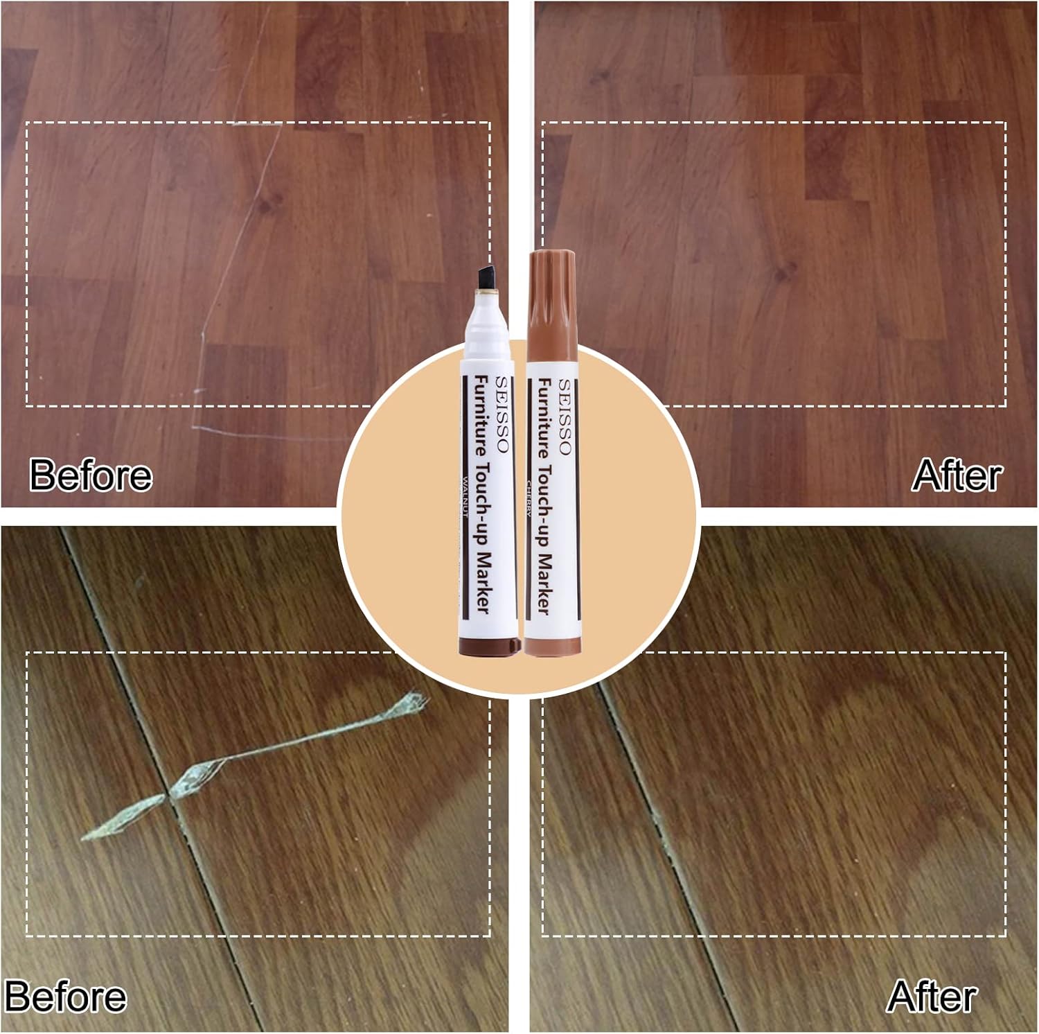 • 【EASY TO USE】: Apply the filler into the cracks, and then smooth the surface with scraper. The markers can be used to touch up the superficial scratches or to draw wood grain. For large holes, you will need to fill the hole with wood putty first, let it dry, and then repair it with wood filler.