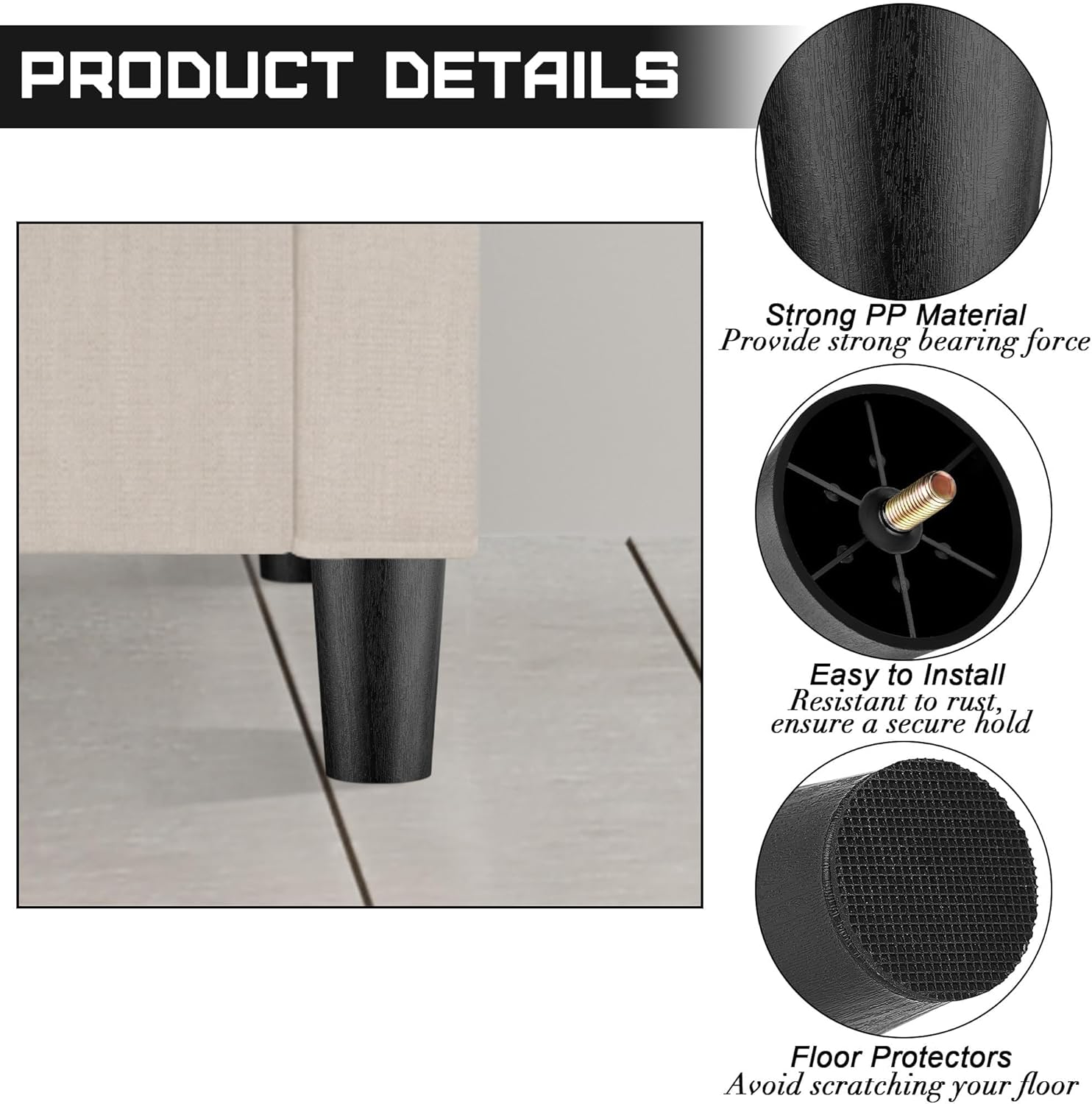 • Wide uses: these plastic sofa couch and chair legs are widely applicable to all kinds of furniture, such as sofas, coffee tables, dressers, beds, desks, cabinets, coffee tables, TV cabinet legs, footstools, and more, with a simple design and complete accessories, allowing your home to have a new look