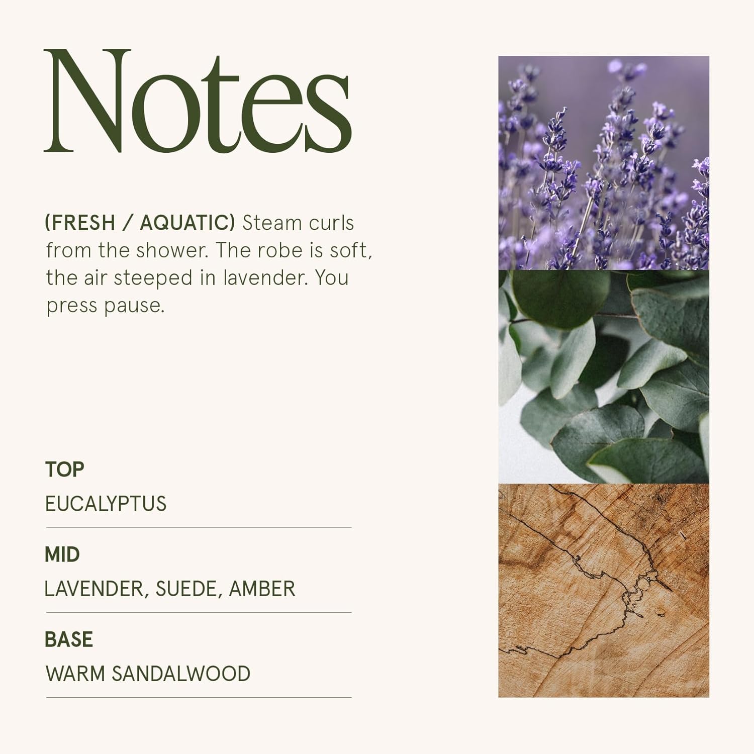 • LAVENDER SUEDE: A harmonious blend of invigorating eucalyptus, sweet orange, and aromatic pine leads to a heart of soothing lavender, velvety suede, and rich amber, ultimately settling into a cozy base of sweet coumarin, creamy vanilla, and warm sandalwood in this enchanting fragrance.